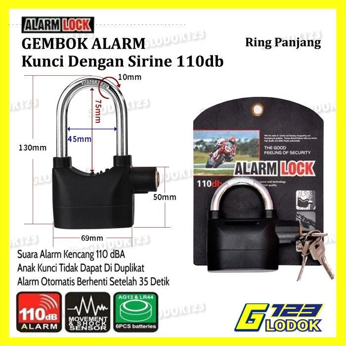 Gembok Alarm Anti Maling (Alarm lock Kunci Gembok Alarm ) - Ring Panjang