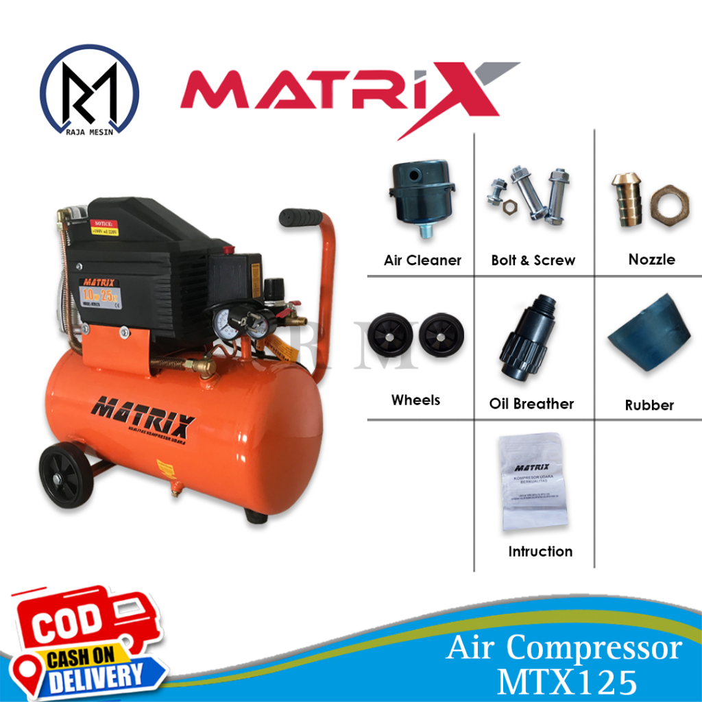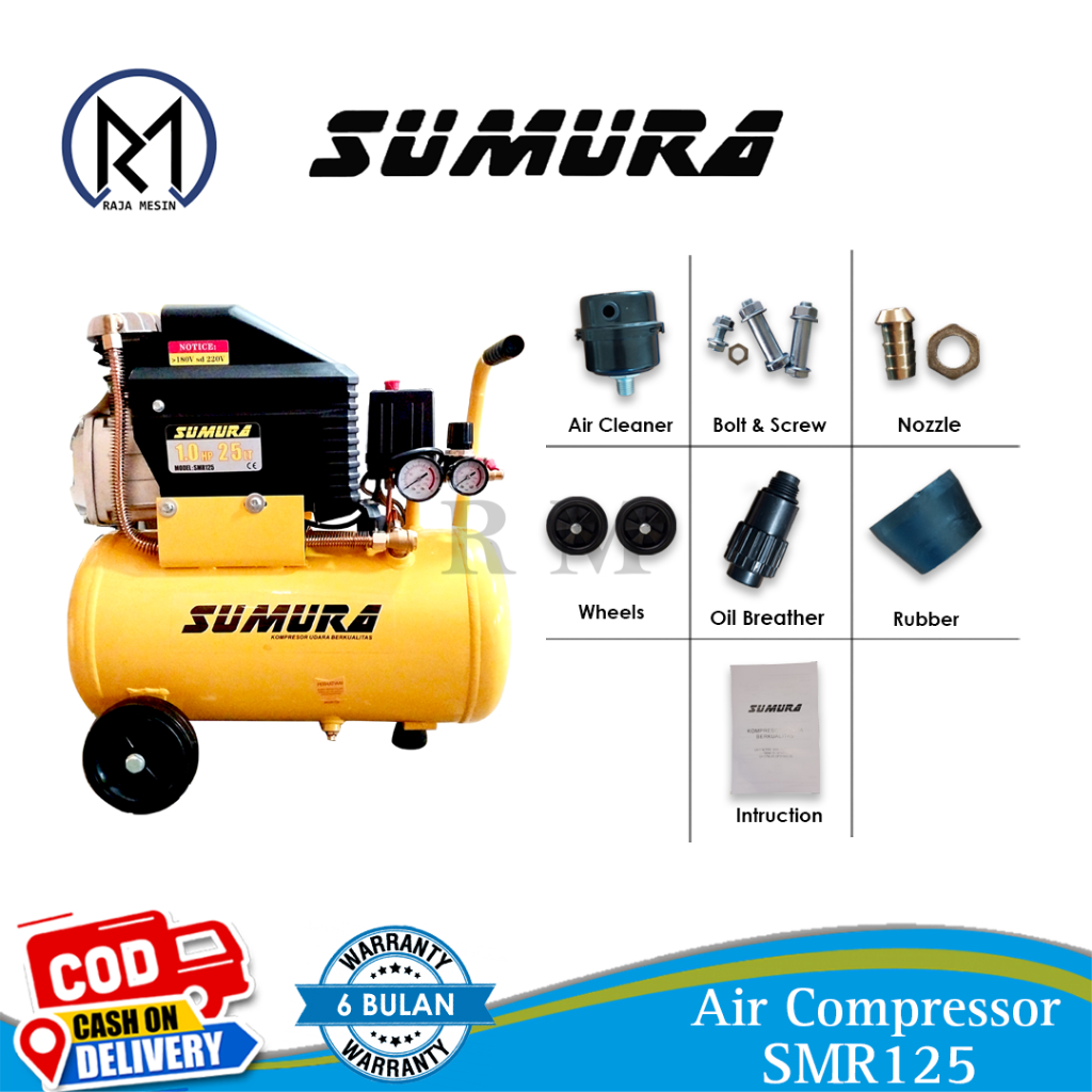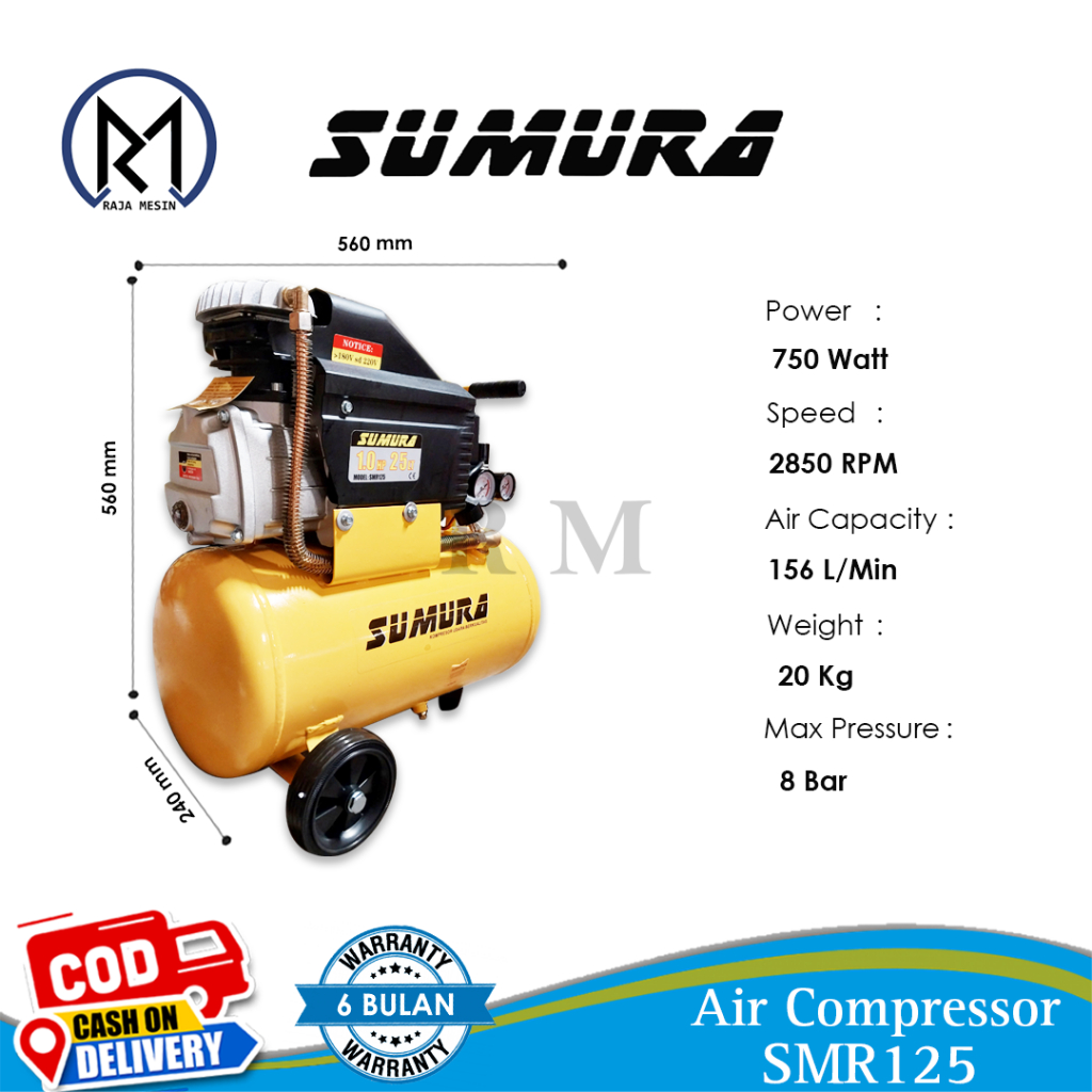 Kompresor Angin Listrik / Air Compressor Matrix MTX125 (1HP, 25 Liter)/Air Compressor Sumura SMR125 (1HP, 25) Liter+ Pac