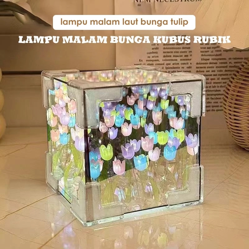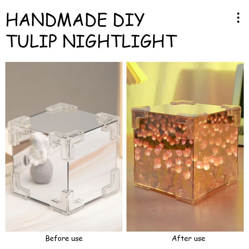 ⭐cutenery⭐21 Bunga Tulip Lampu Lampu DIY Tulip Lampu Malam Led Cermin Lampu Dekorasi Hadiah Ulang Tahun