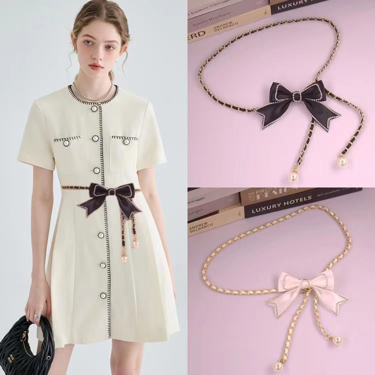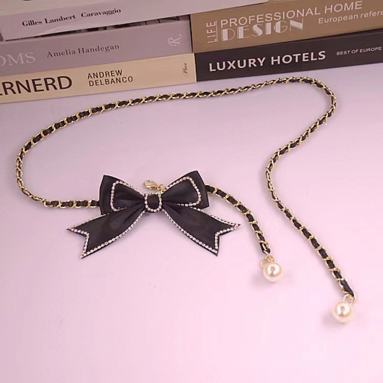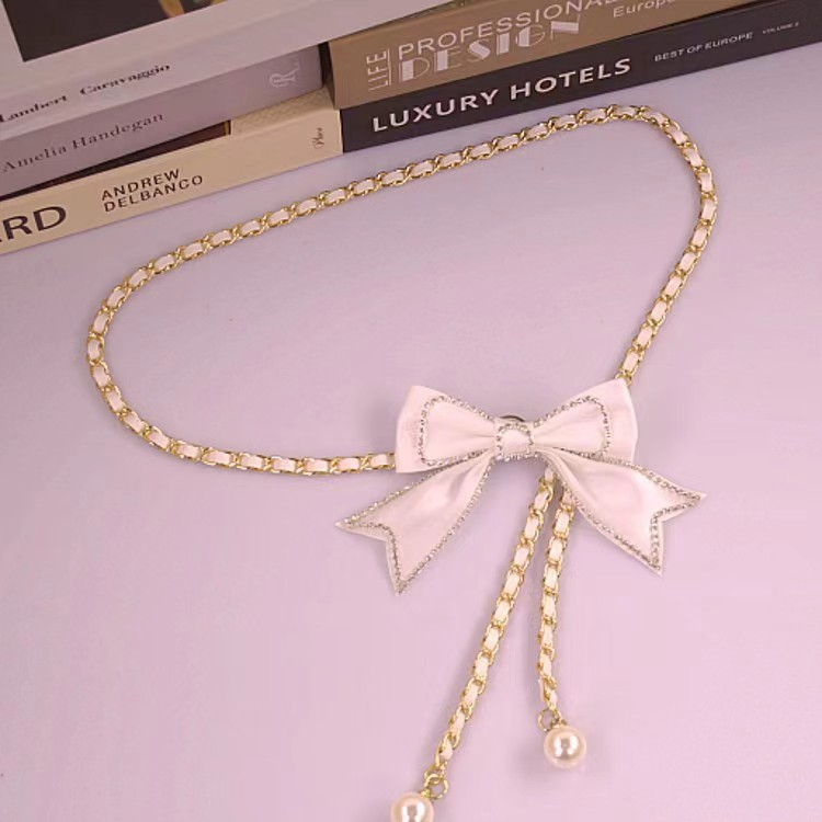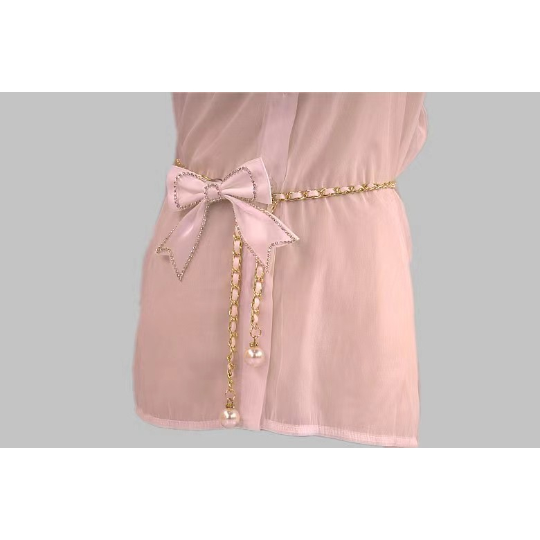 Ikat Pinggang Pita Belt Rantai Slim Model Mutiara Imitasi Fashion Wanita Korea Fashion Womens Belt LT-064