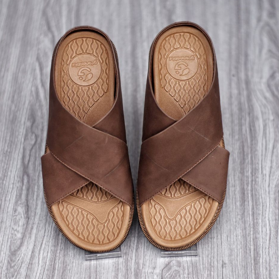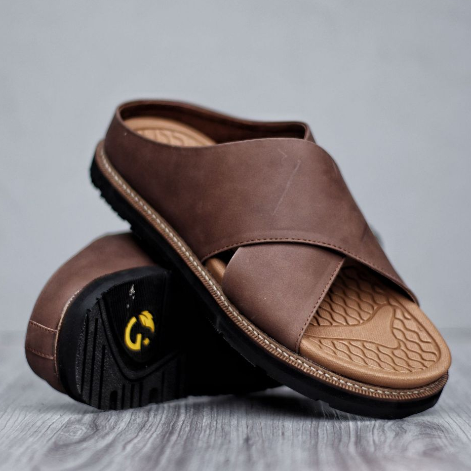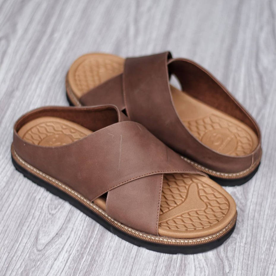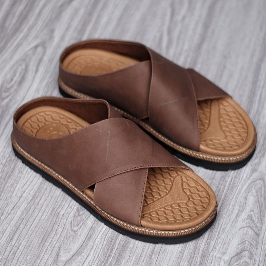 Sandal Slide Pria Kulit Coklat Hitam Premium Quality - Sendal Slop Pria DERIO