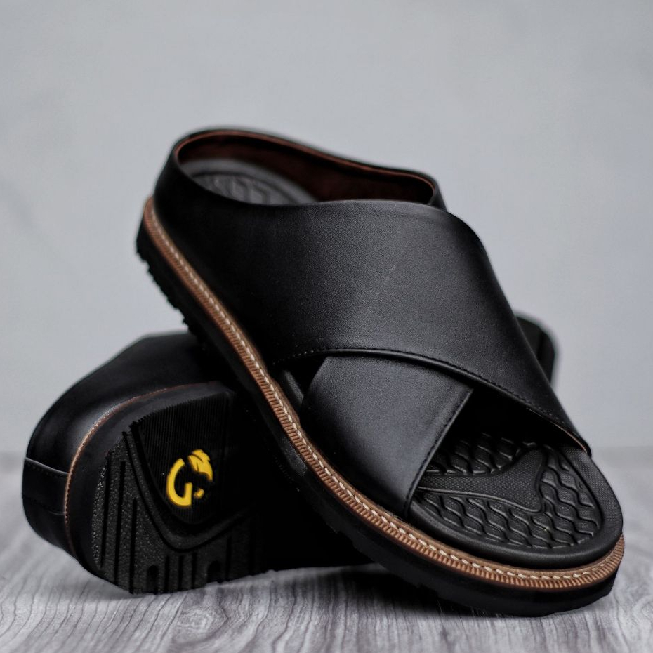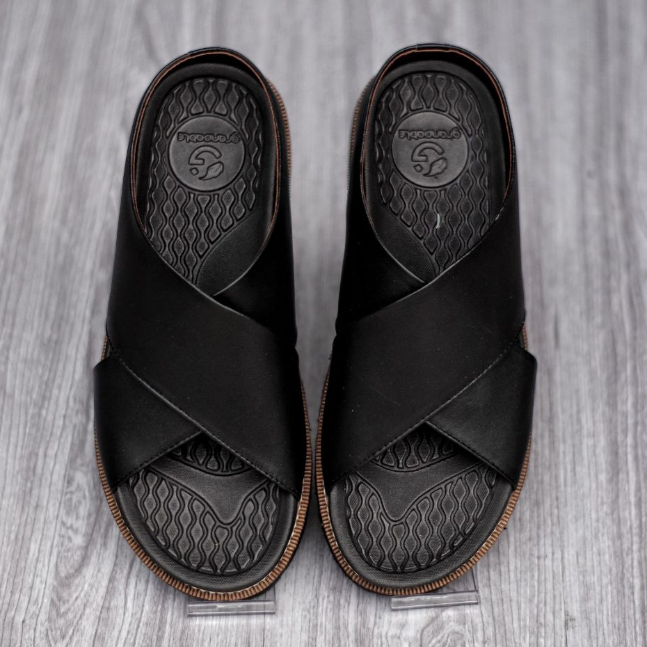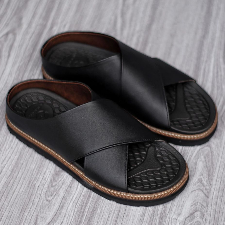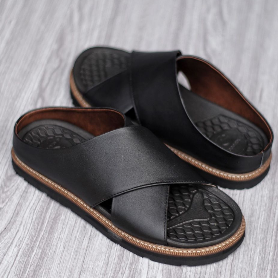 Sandal Slide Pria Kulit Coklat Hitam Premium Quality - Sendal Slop Pria DERIO