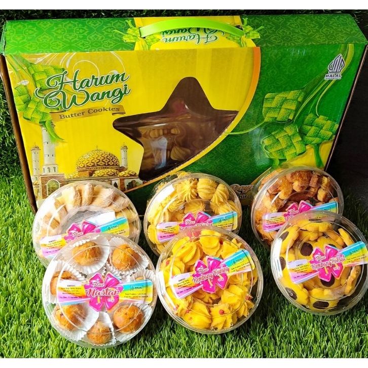 Parcel Lebaran Harum Wangi Premium Hampers Suguhan Rumah Kue Kering Paket Hari Raya Idul Fitri Satu Box Isi 6 Macam