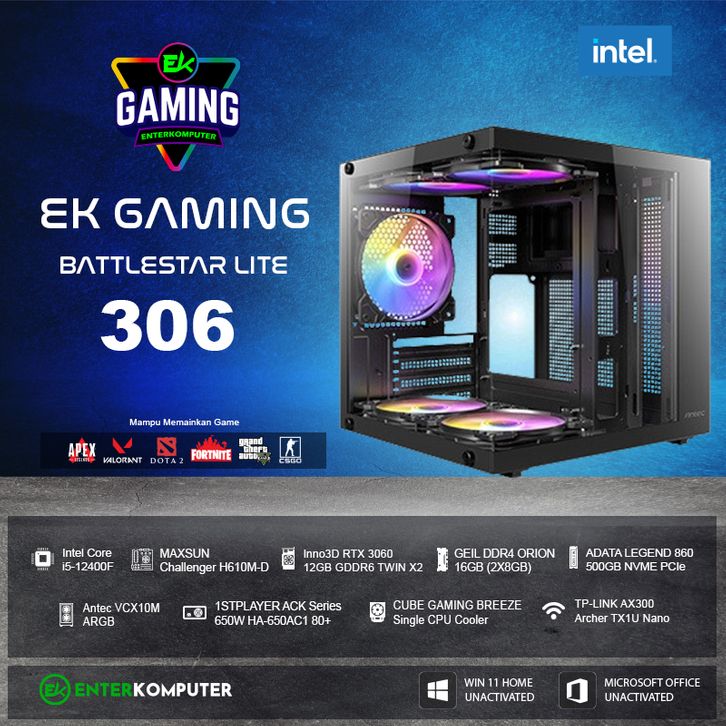 PC Rakitan EK Gaming BattleStar Lite 306 - Core i5 RTX 3060 - Enter Komputer