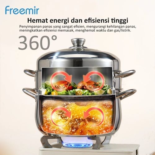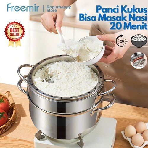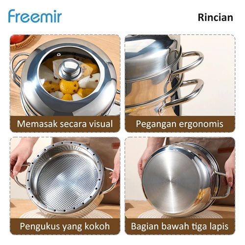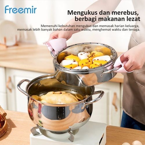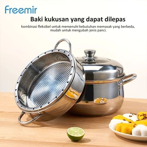 Freemir Panci Kukus Stainless Steel 26cm Dengan Tutup Kaca Anti Karat Nasi Matang Cepat 20 Menit