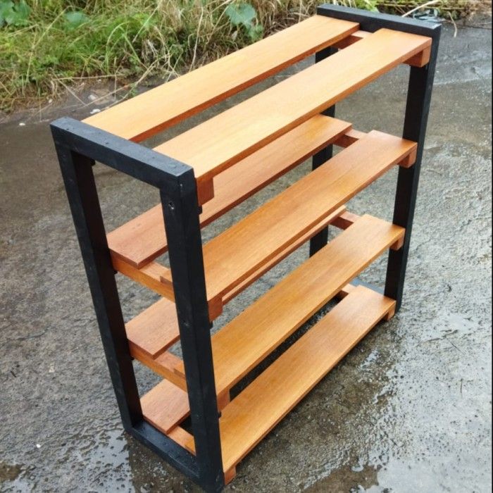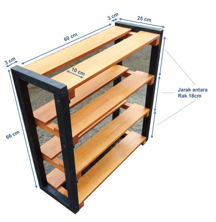Rak Sepatu Rak Sepatu / Rak Display / Rak Serbaguna Kayu Full Solid - Frame Hitam