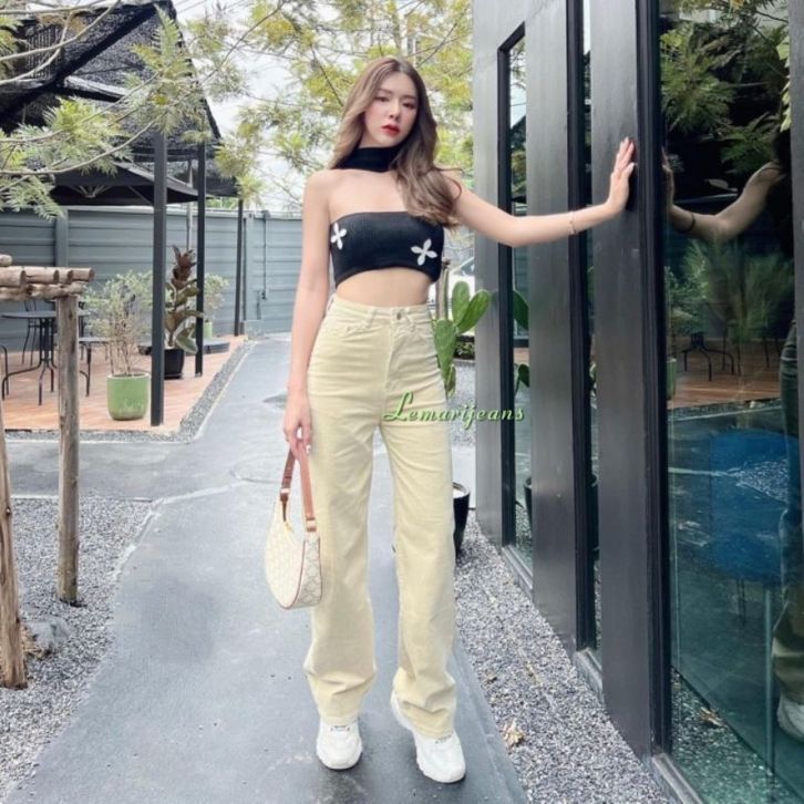 SAKILLA LOOSE CREAM Celana panjang wanita kekinian Jeans high waist korean style highwaist kulot loose fashion wanita