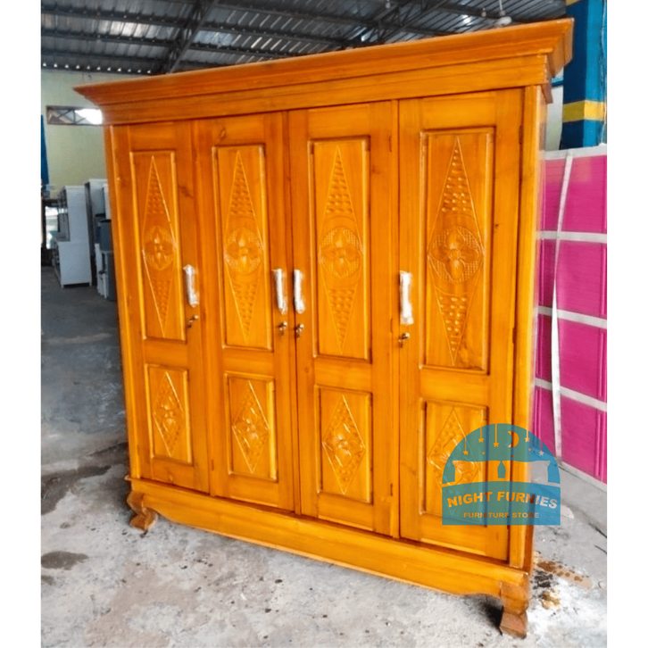 Kunci / Lemari Pakaian Kayu Jati 4 Pintu / Lemari Baju Jati Menium / JT7