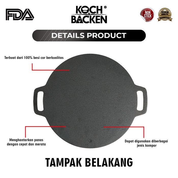 KOCH&BACKEN Cast Iron Crepes Pan - Loyang Crepes Wajan Datar