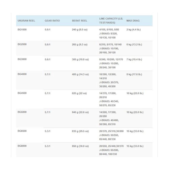 Reel Spinning DAIWA BG | SALT WATER | Pilih Ukuran