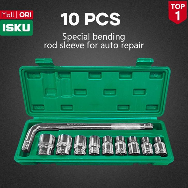 Isku Mata Kunci Sok Set 10Pcs Termasuk 9pcs 8-24mm 1/2 Inch 6PT Mata Sock Set Dan 1pcs 1/2 Inch Gagang Sock L/Kunci Set