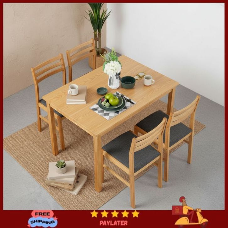Set Meja Makan Minimalis 4 Kursi Cokelat Muda Dining Table Dinner Table Meja Bangku Ruang Makan Furniture