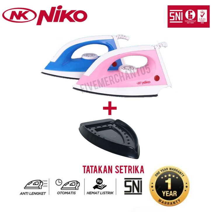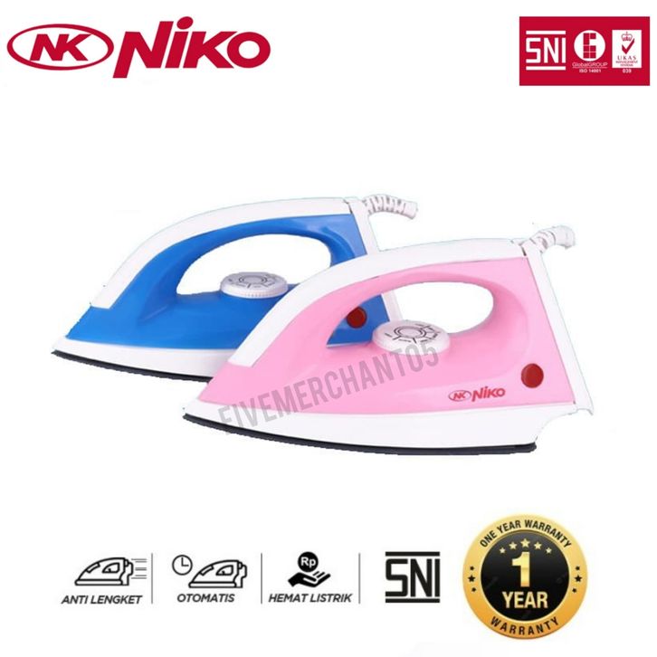 Setrika Premium Listrik Niko NK 999s Electric Dry Iron Pink Blue Anti Lengket Teflon NK 999 S Low Watt Murah Garansi SNI