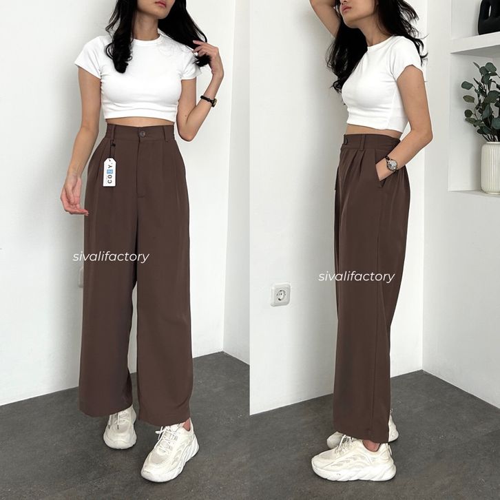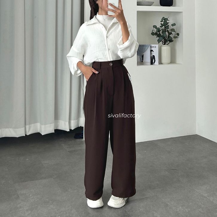 Loose Pants Celana Kulot Polyester Anti Kusut - Trousers Kantor Formal / Casual