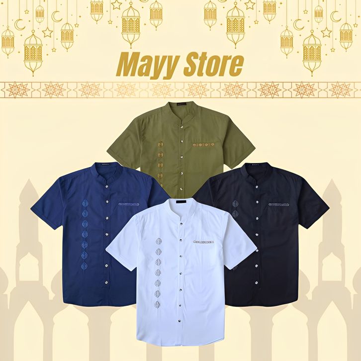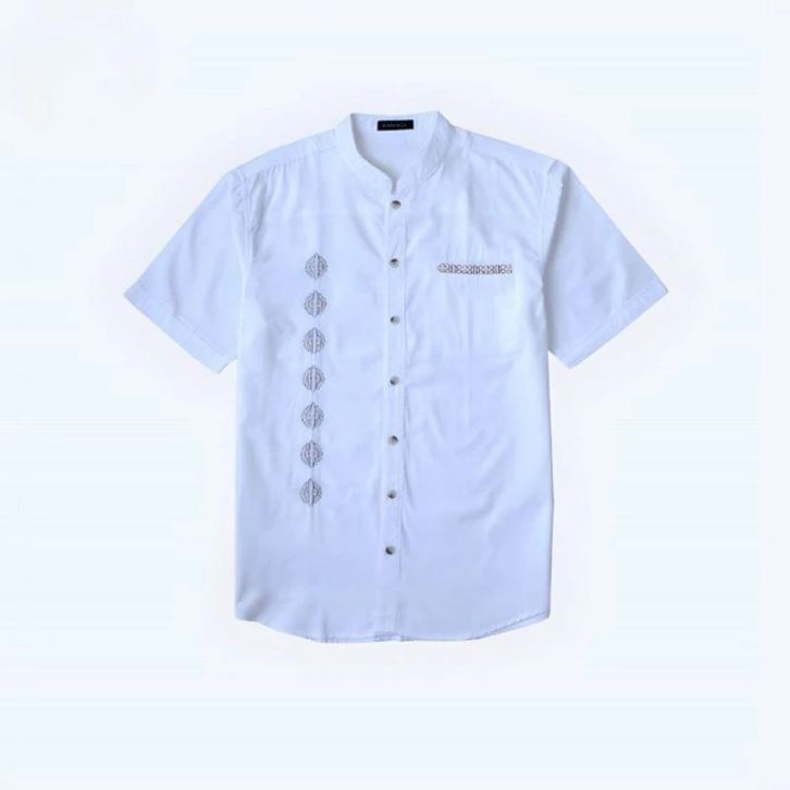 Baju Koko Pria Dewasa Terbaru Lengan Pendek Muslim Putih Modern Bahan Katun Bordir Kurta Panjang