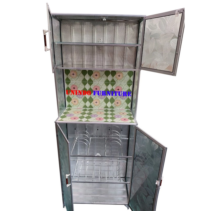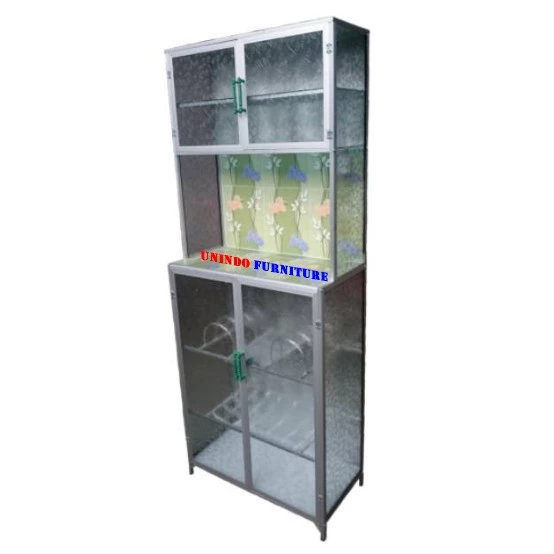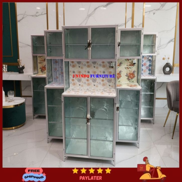Rak Piring Minimalis Modern Lemari Kaca Dapur Rak Piring Lemari Dapur Mini 2 Pintu Rak Piring Tertutup Serbaguna