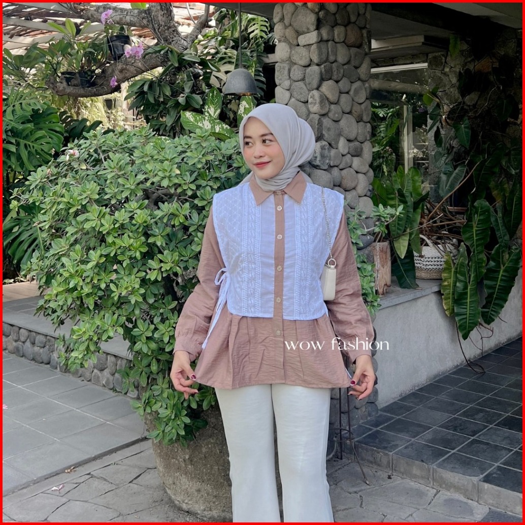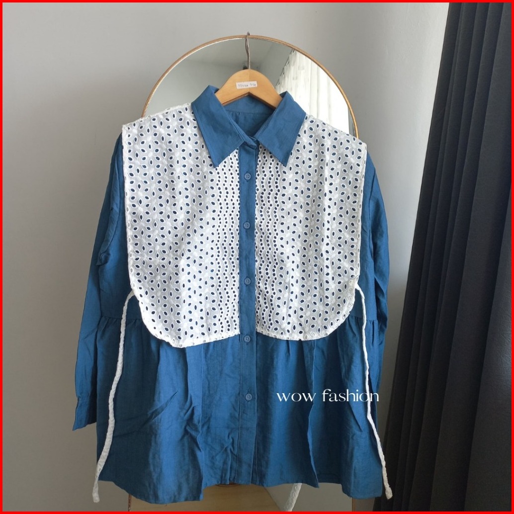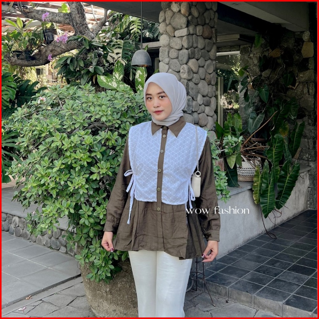 Wow-rachel Kemeja Pololinen Mix Brokat Korean Style