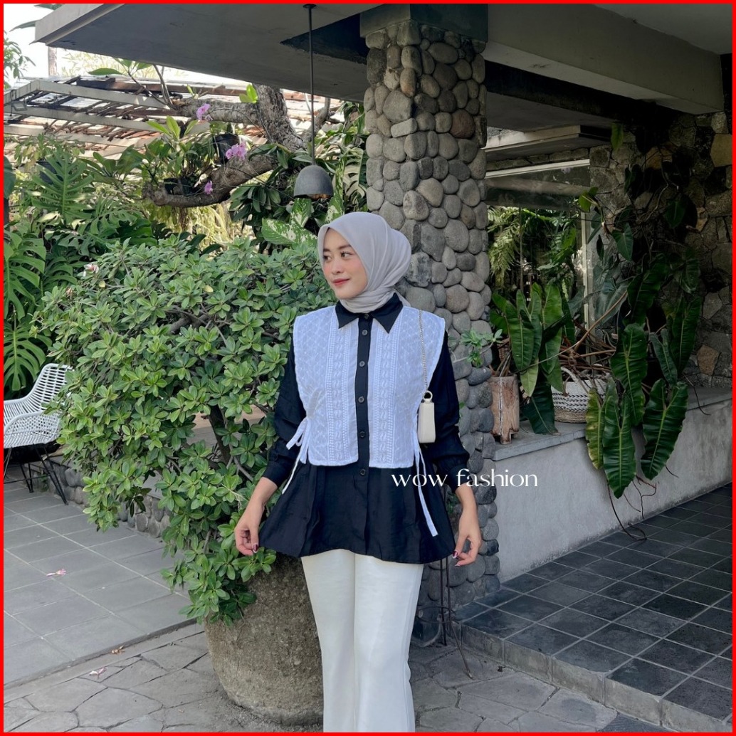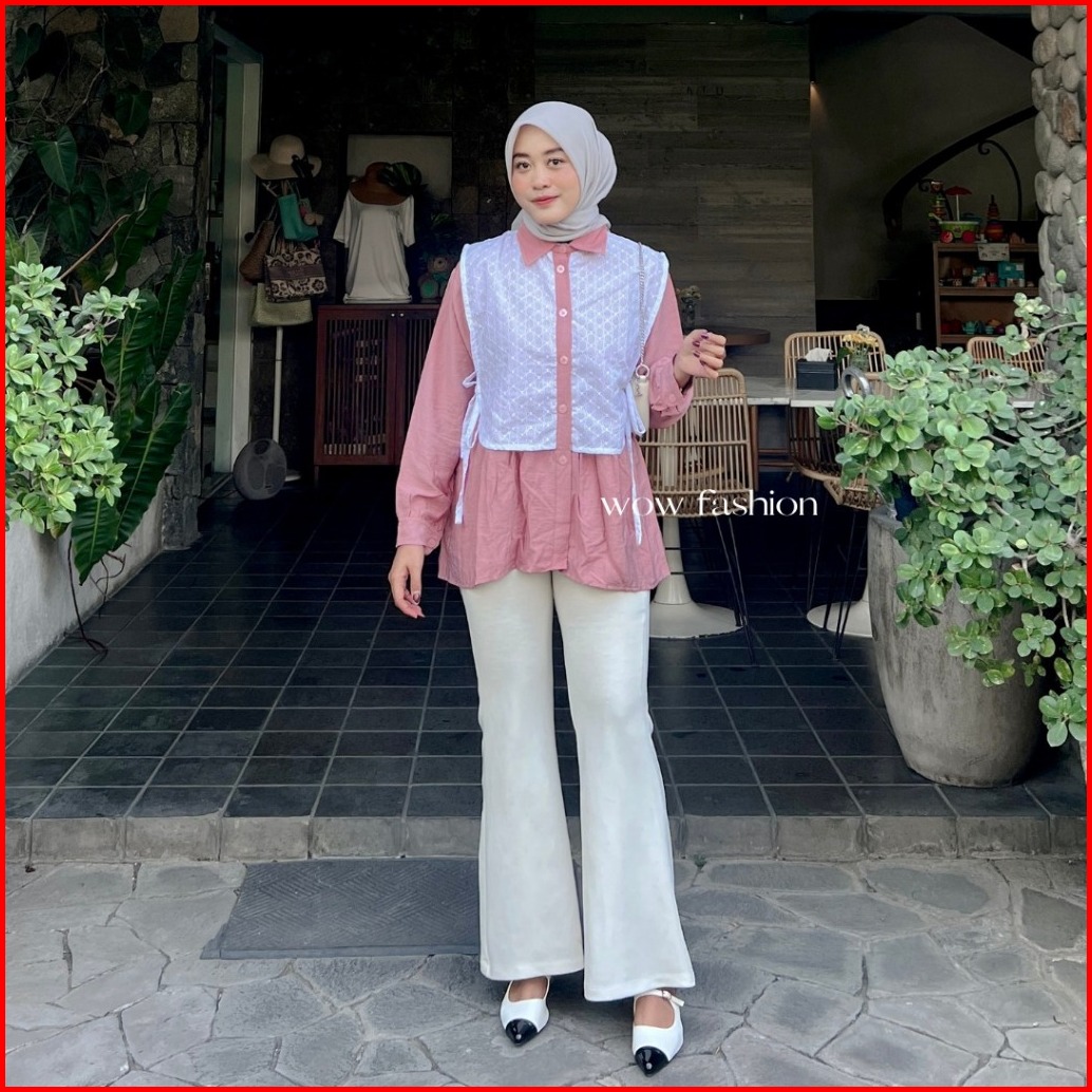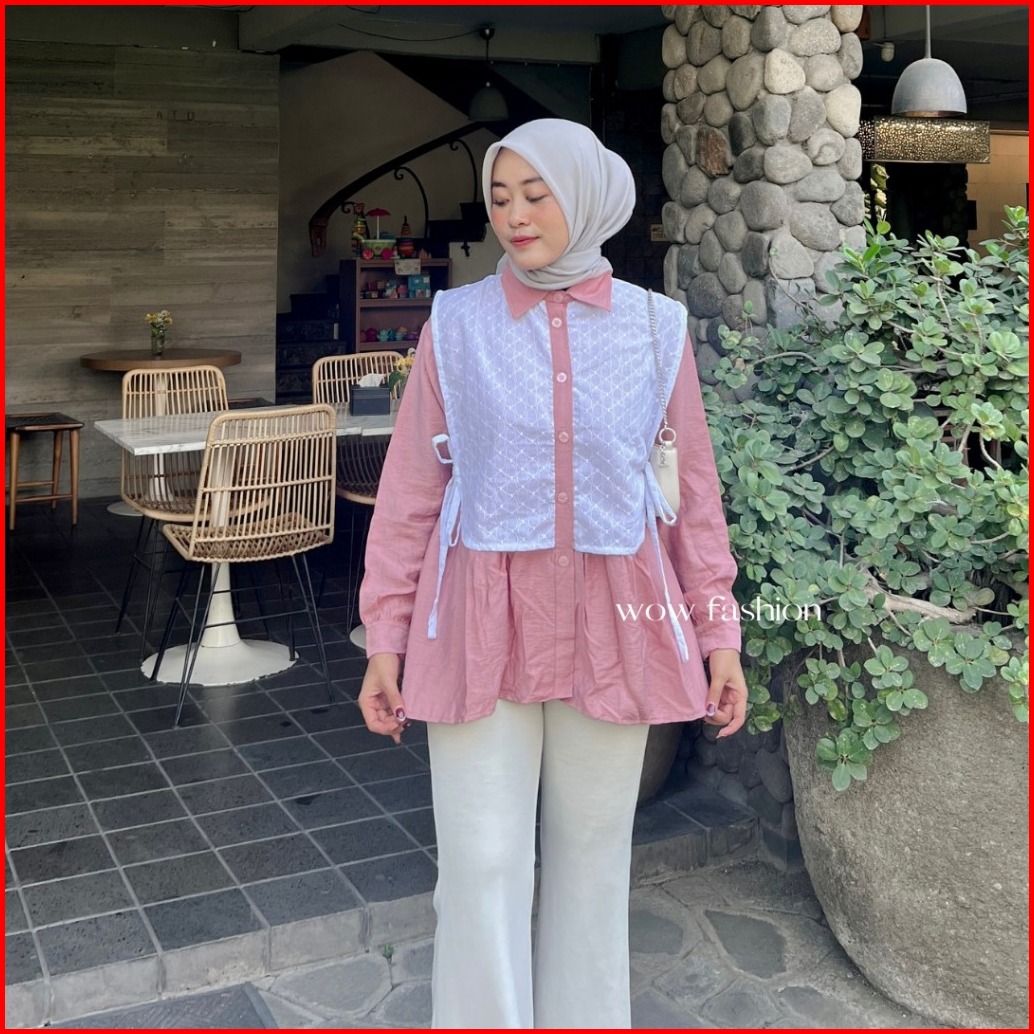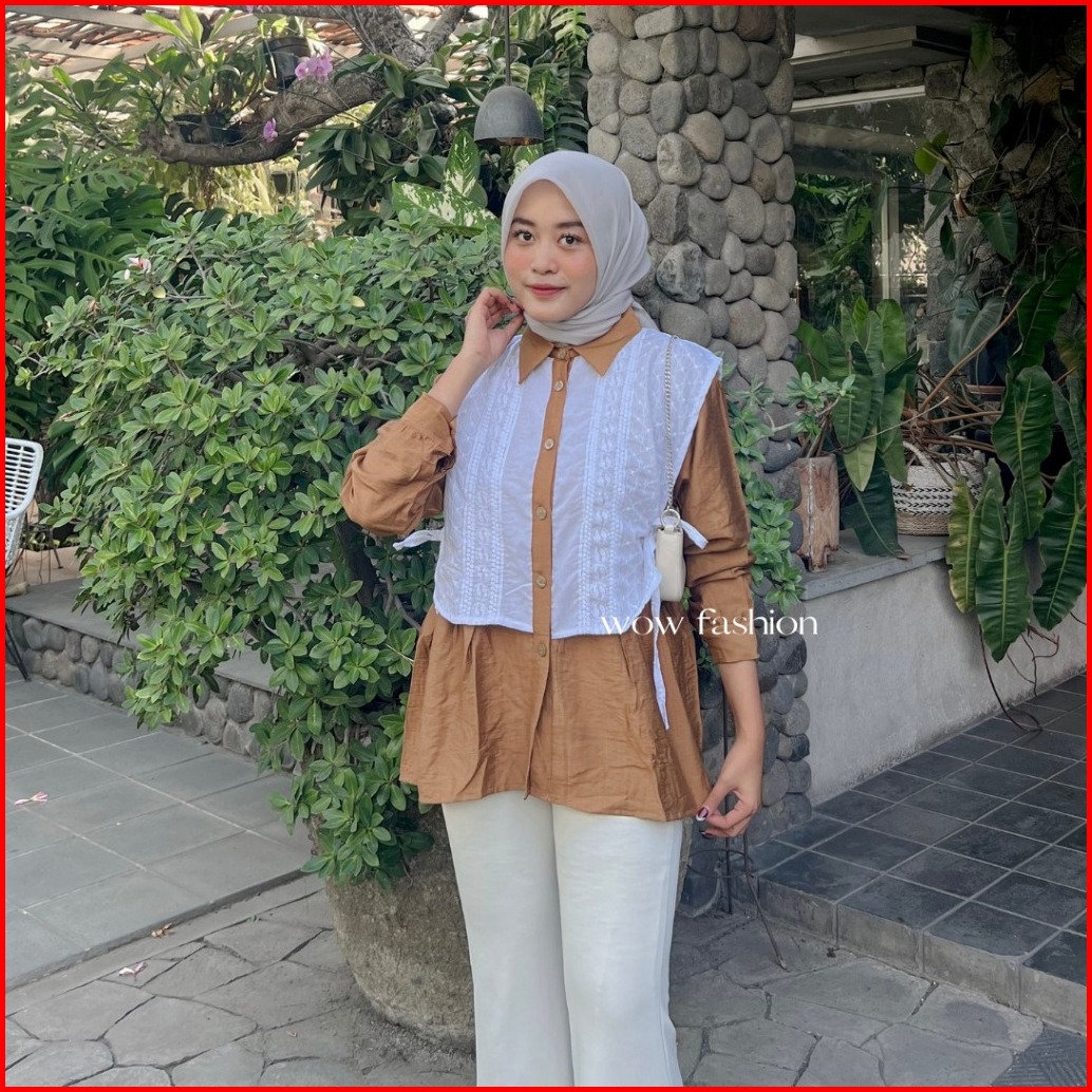 Wow-rachel Kemeja Pololinen Mix Brokat Korean Style