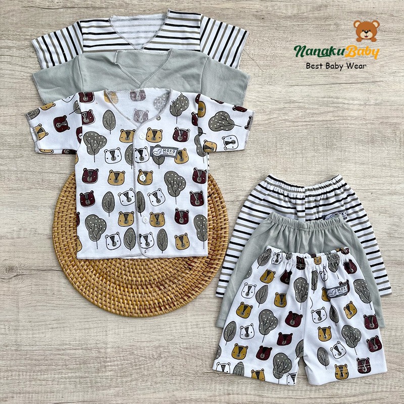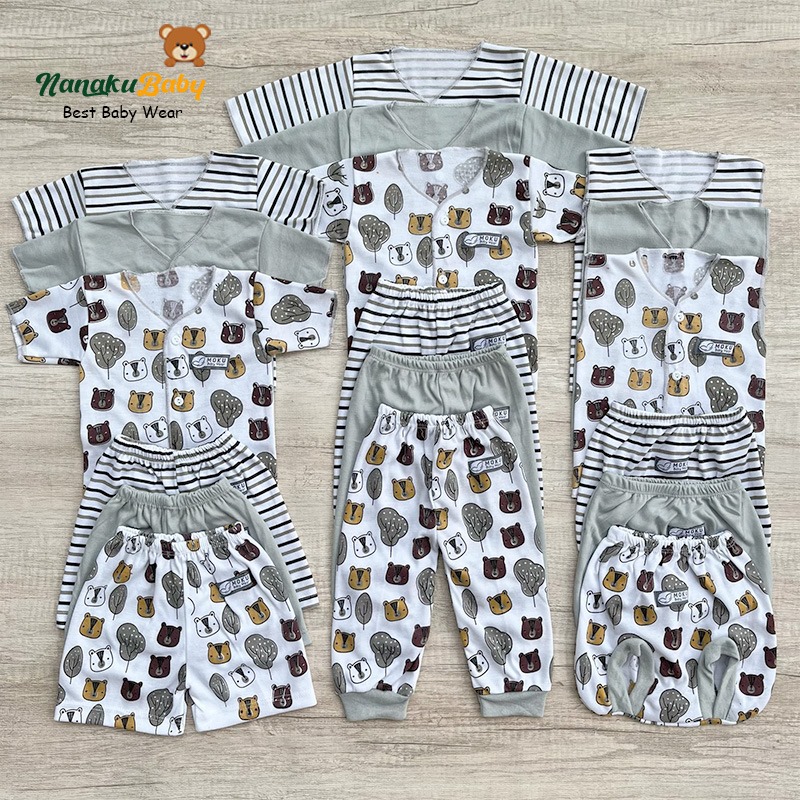 Nanaku Baby - Set Paket Newborn Isi 18 PCS Setelan Baju Celana Bayi Motif Unisex Serie Driftwood Usia 0-3 Bulan