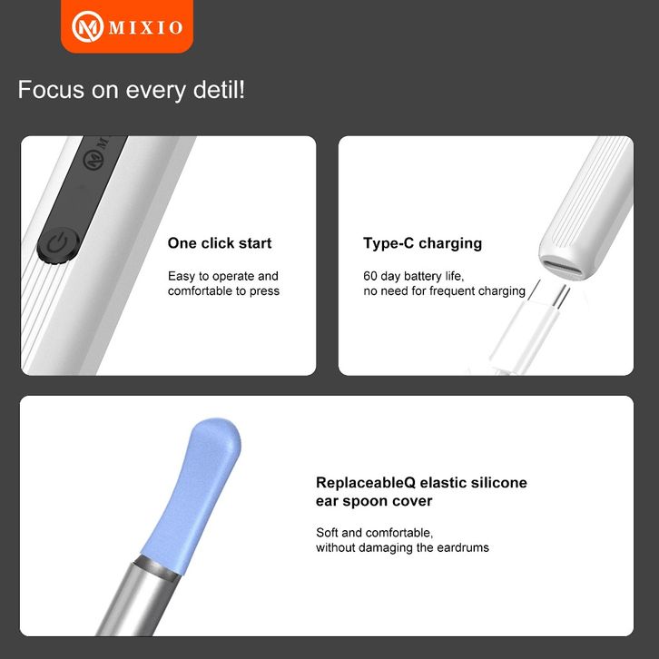 Korek Kuping Kamera MIXIO M4 8MP HD Camera Visual Ear Stick Pembersih Telinga