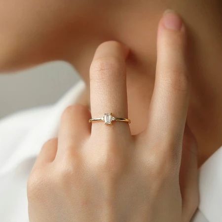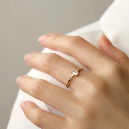 Baguette Zirconia Dainty Ring — 16 K Gld Plated S925 Sterling Silver Cin cin Anti Karat