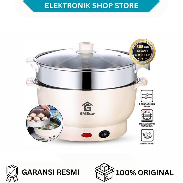 Panci Listrik Serbaguna (2 in 1) 1225 - Electric Cooking Pot Free Steamer Stainless