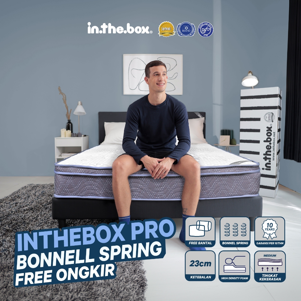 Kasur Spring Bed Bonnell IN THE BOX Pro Nyaman Berkualitas - Free Bantal Garansi 10 Tahun