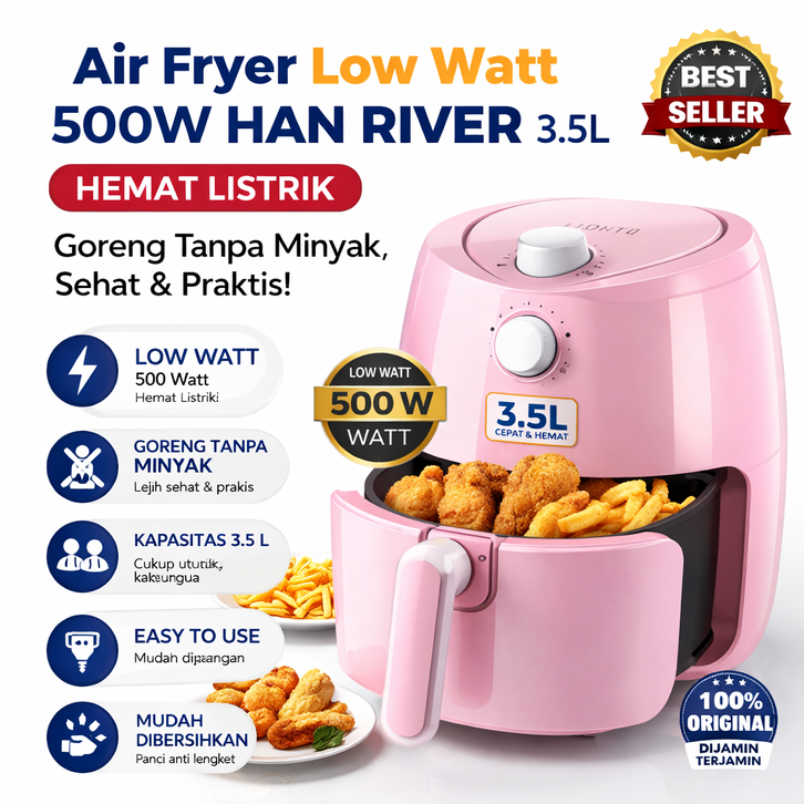 air fryer low watt HAN RIVER HRAF04PK Air Fryer 3.5L 500watt Low power Pink Listrik air fryer han river