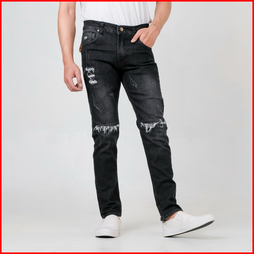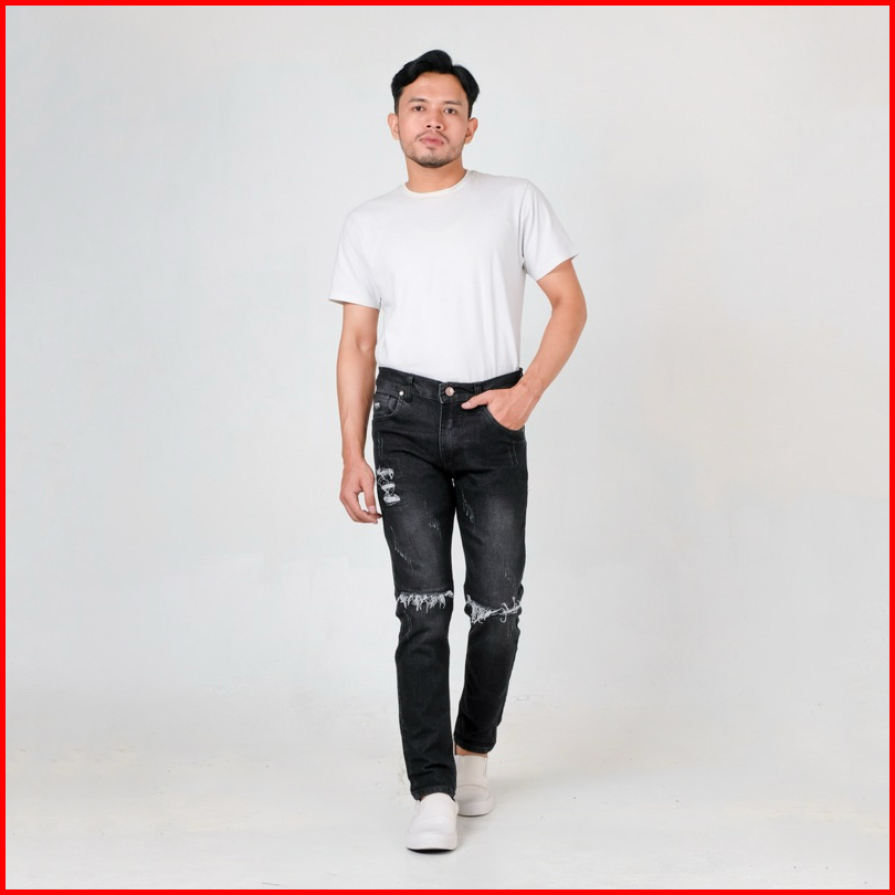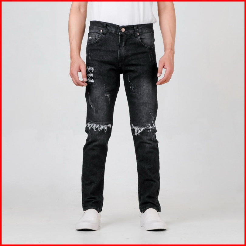Roosterdenim - Petir Long Ripped Pants Knee Blackwash - Celana Jeans Panjang Hitam Sobek