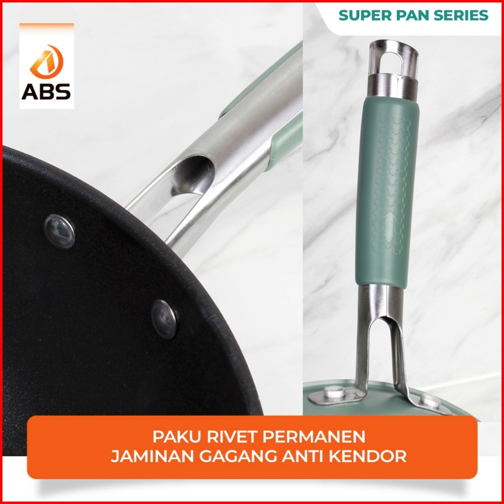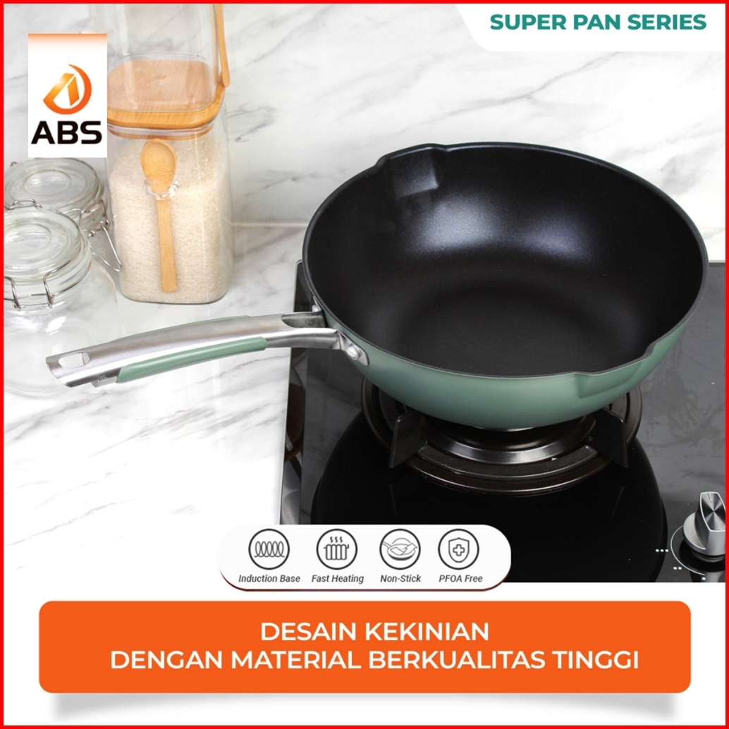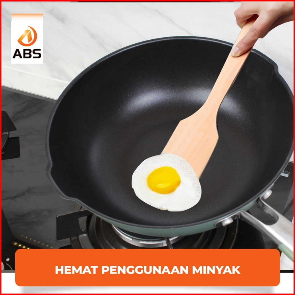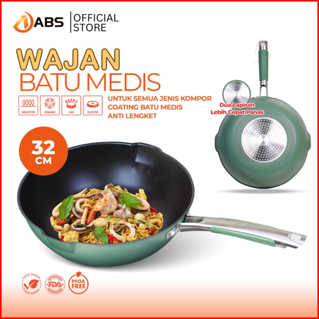 Abs X Hongzhuo Wajan Wokpan Coating Batu Medis Emerald Green Hijau Premium Model Baru Wajan Kokoh Dan Mewah Ukuran 32cm