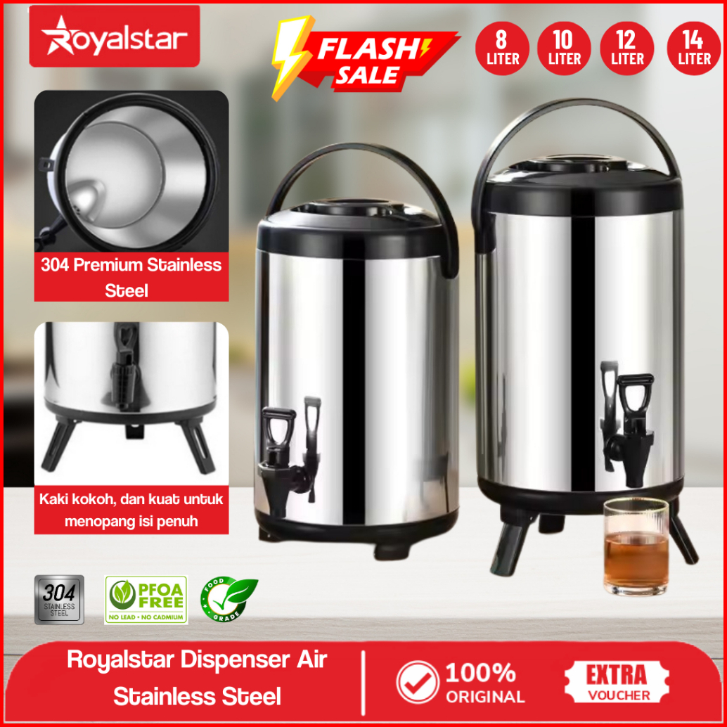 Royalstar Dispenser Air Dispenser Milk Tea 8l 10l 12l 14l Stainless Steel Termos Besar