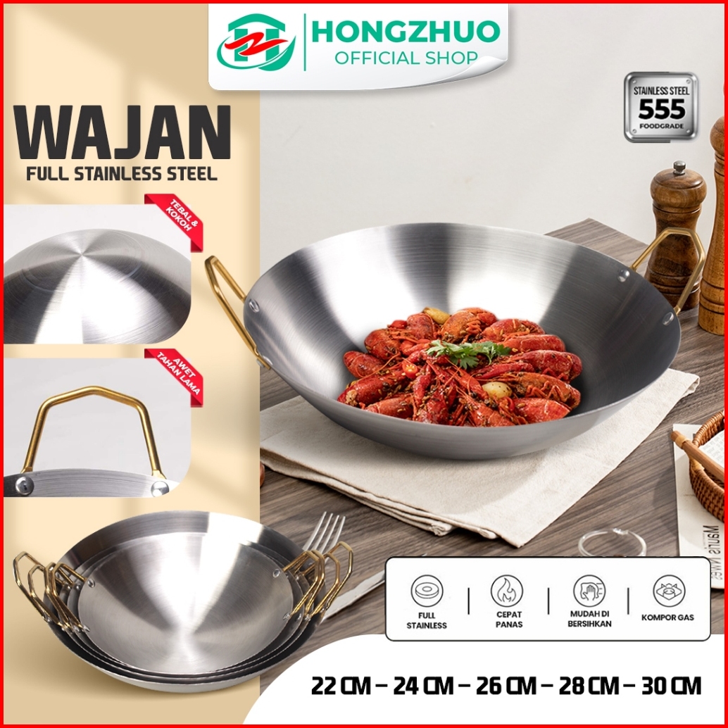 Abs Wajan Stainless Tebal Kuali Besar Premium Dengan Pegangan Stainless Steel Anti Lengket