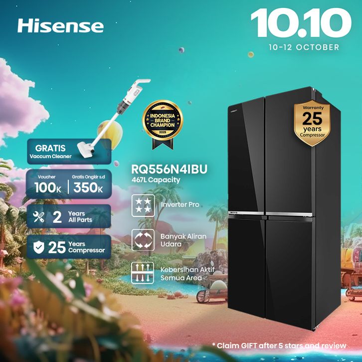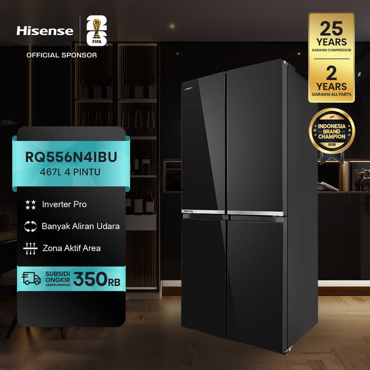 Hisense Kulkas 4 Pintu - RQ556N4IBU - 467L Gross Capacity - Refrigerator - Black