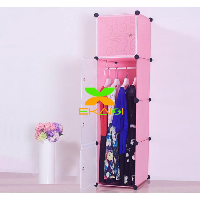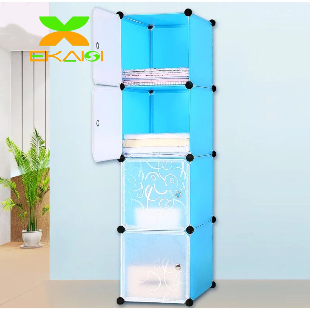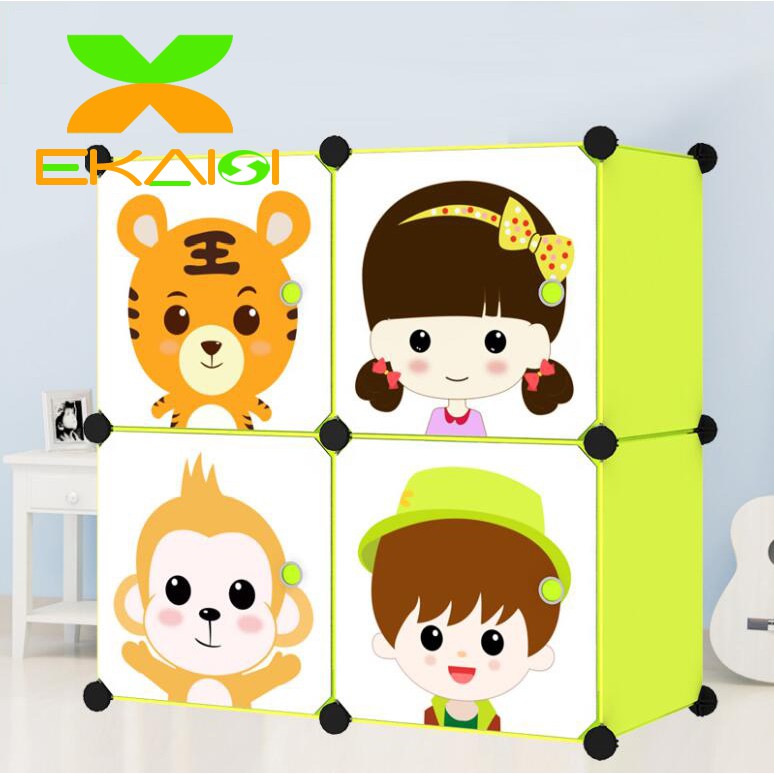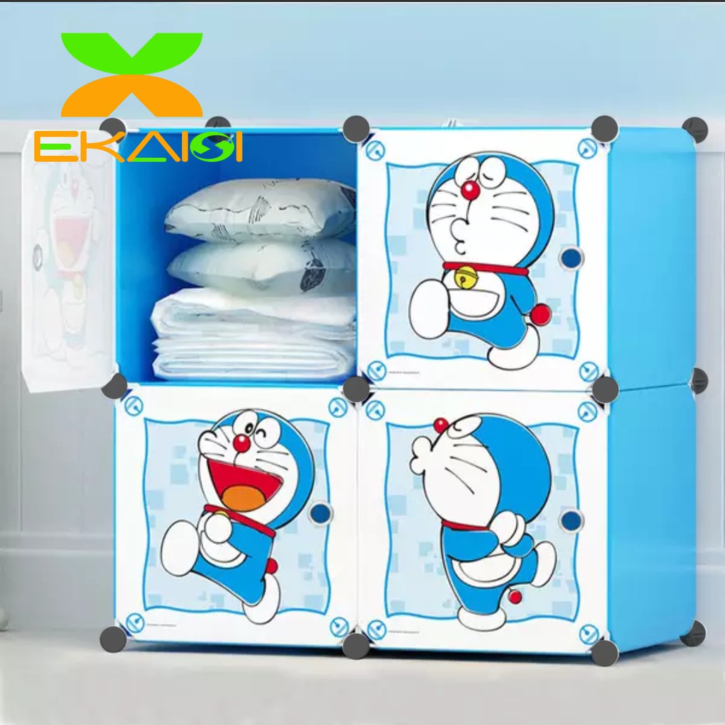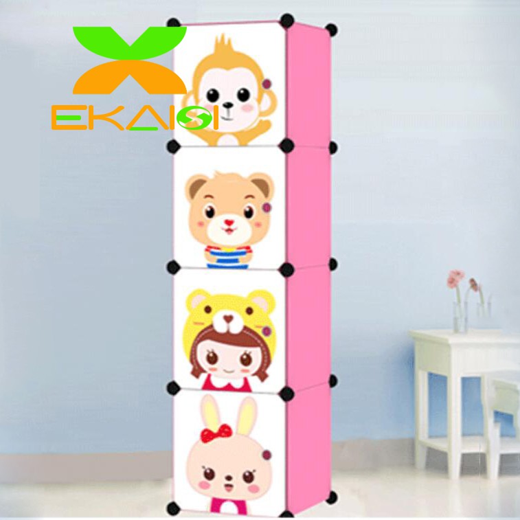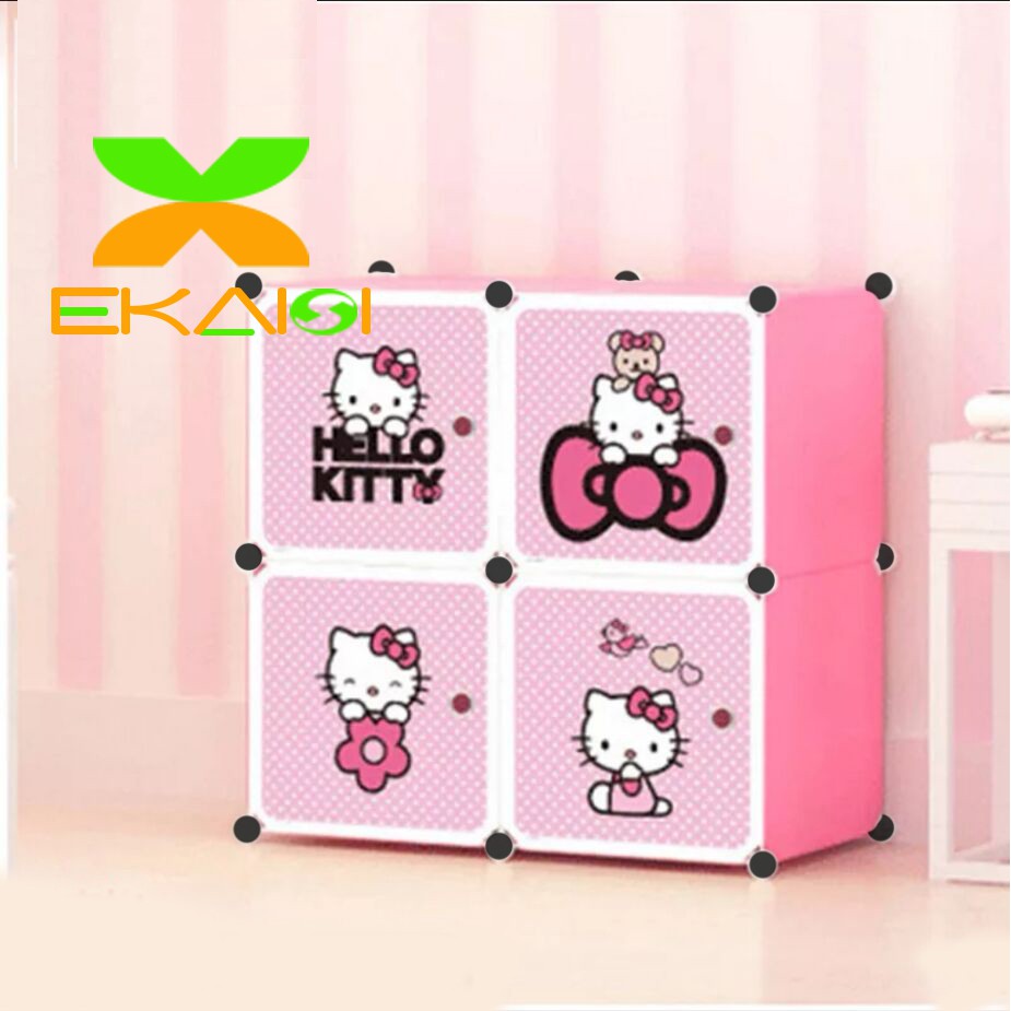 FREE ONGKIR Ekaisi lemari pakaian plastik rak baju anak bayi rak buku tas lemari portable 4 pintu hello kitty