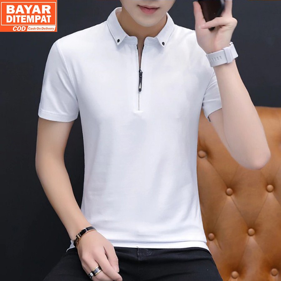 FREE ONGKIR Kaos Pria Terbaru Elyon Abu Tua Polos Lengan Pendek Kerah Original Distro Bandung