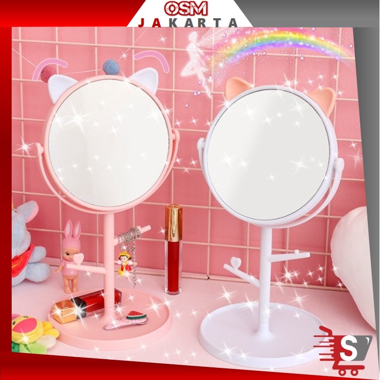 FREE ONGKIR OSM JKT 5162 Cermin Motif Telinga Kucing Panda / Kaca Make Up Bulat / Standing Mirror Make Up