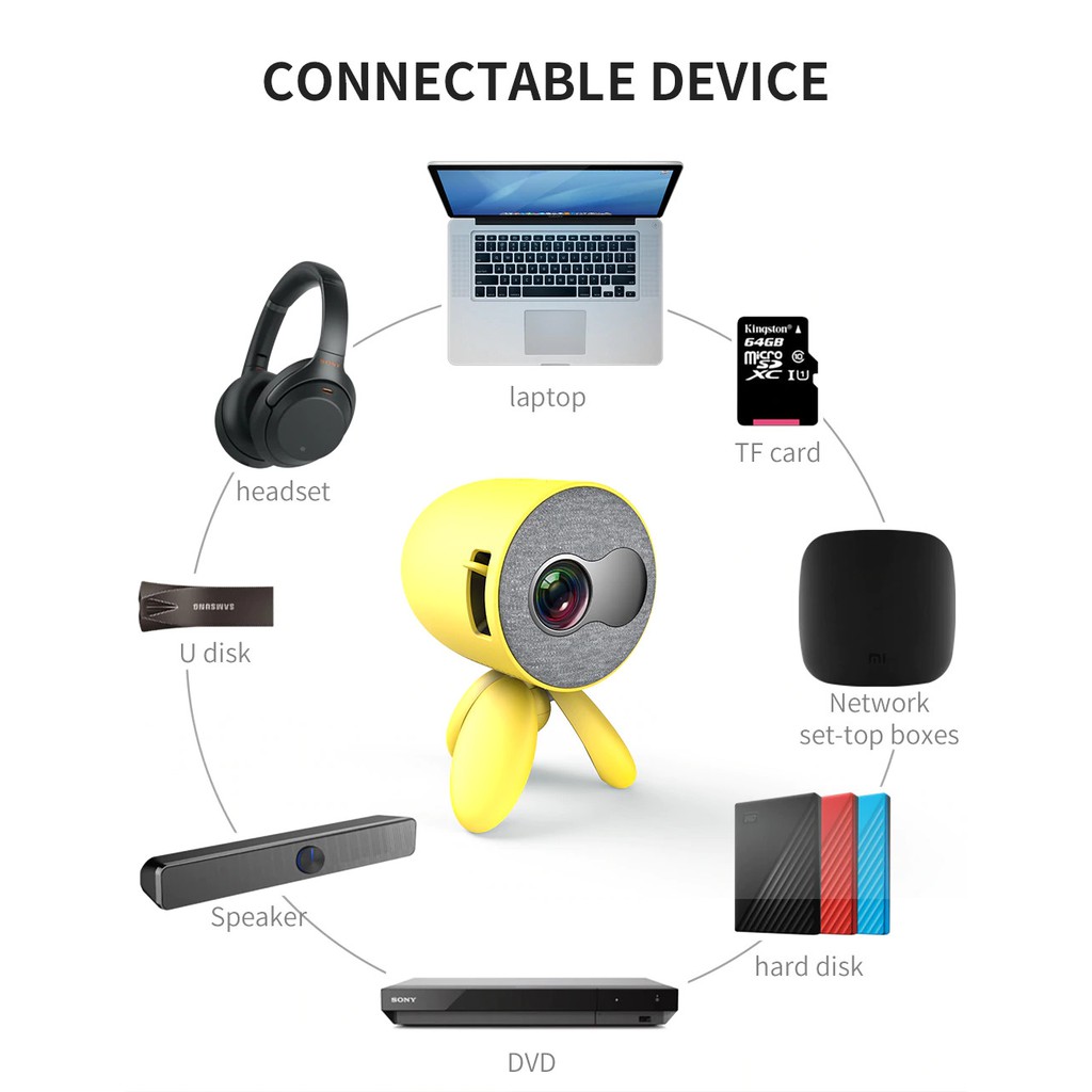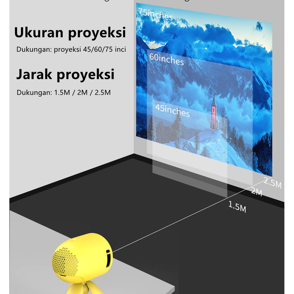 FREE ONGKIR Promo Ekleva YG220 Mini Portable Projector 1080P Mobile Phone Connect Murah Layar proyektor 60 inci gratis