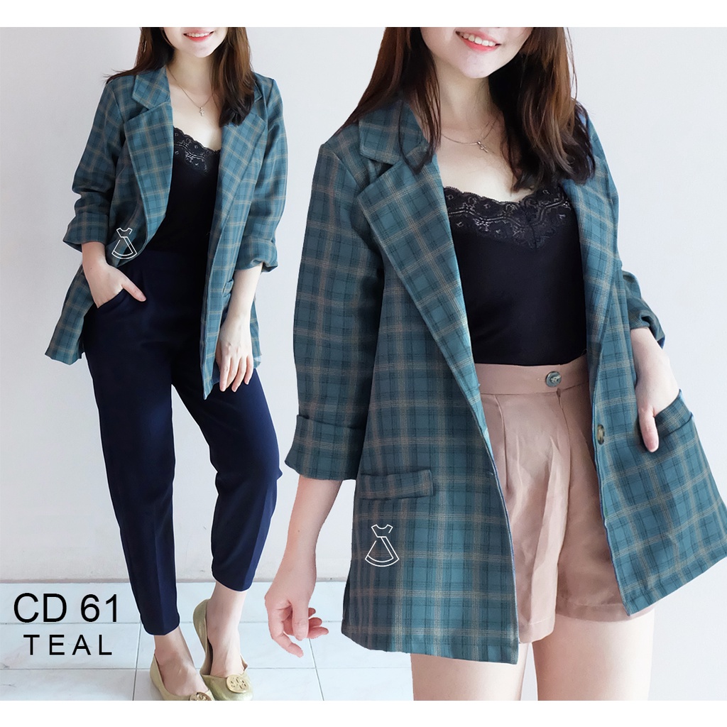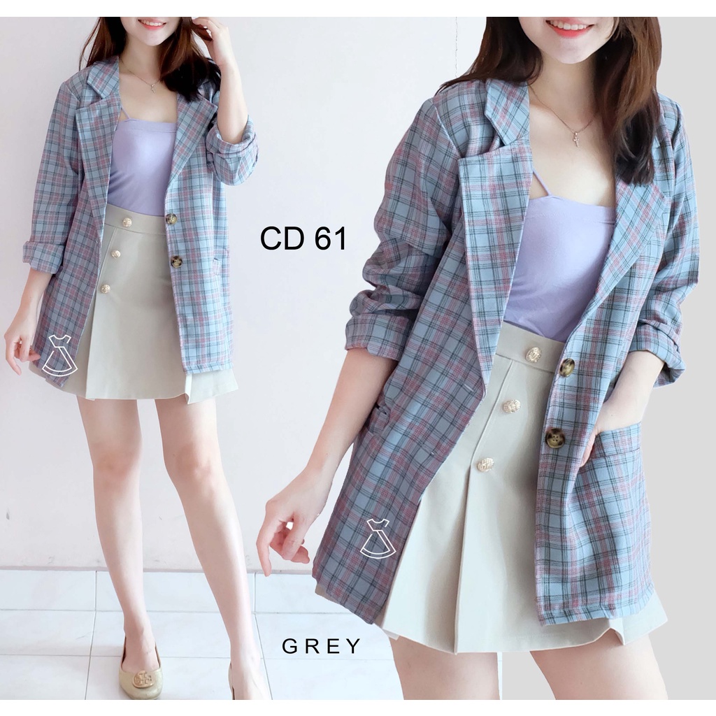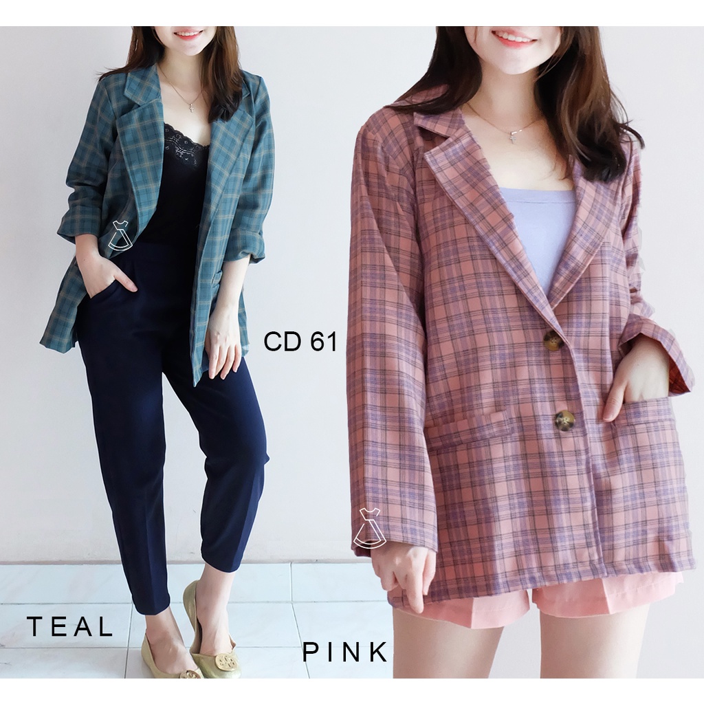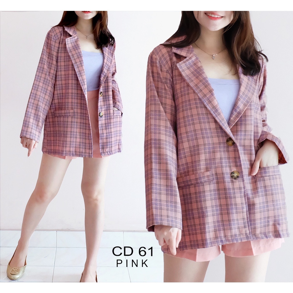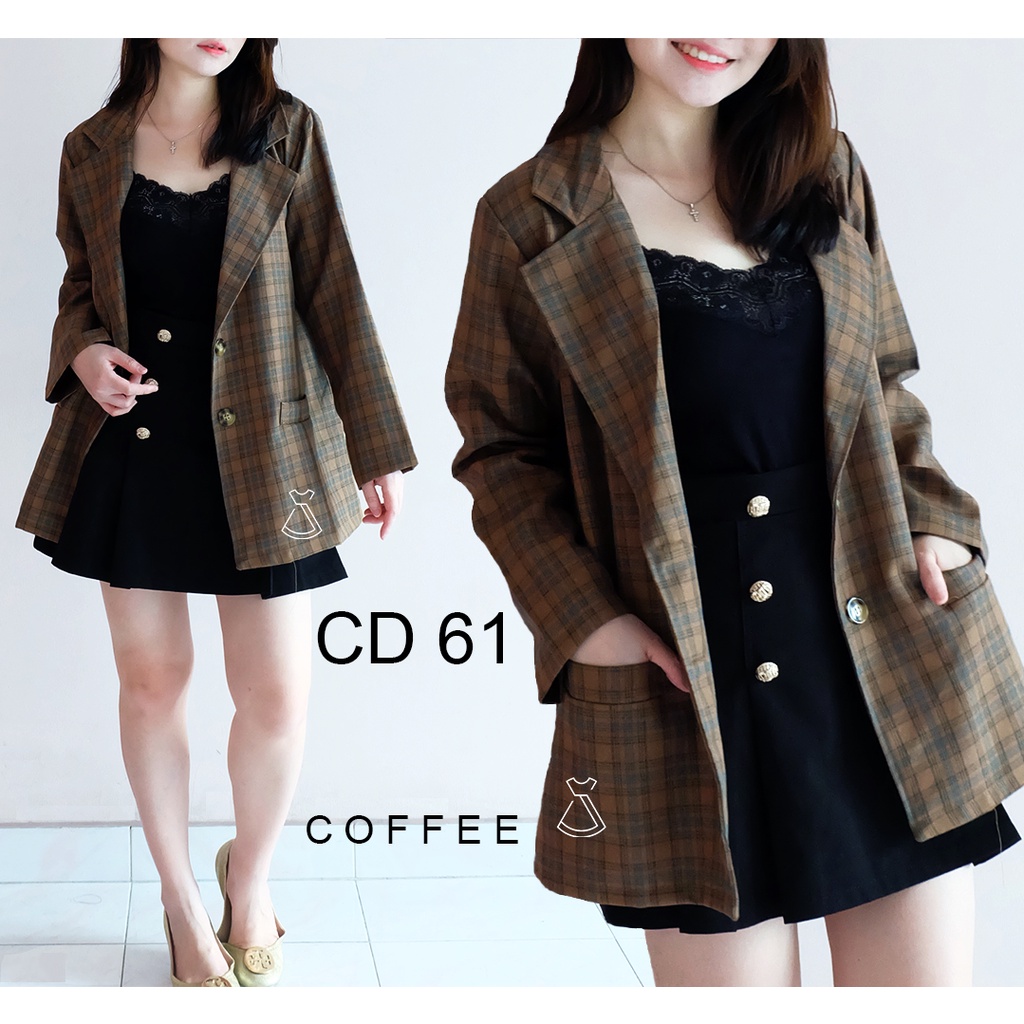 FREE ONGKIR CD61 - Outer Blazer Linen Blazer Kotak Casual