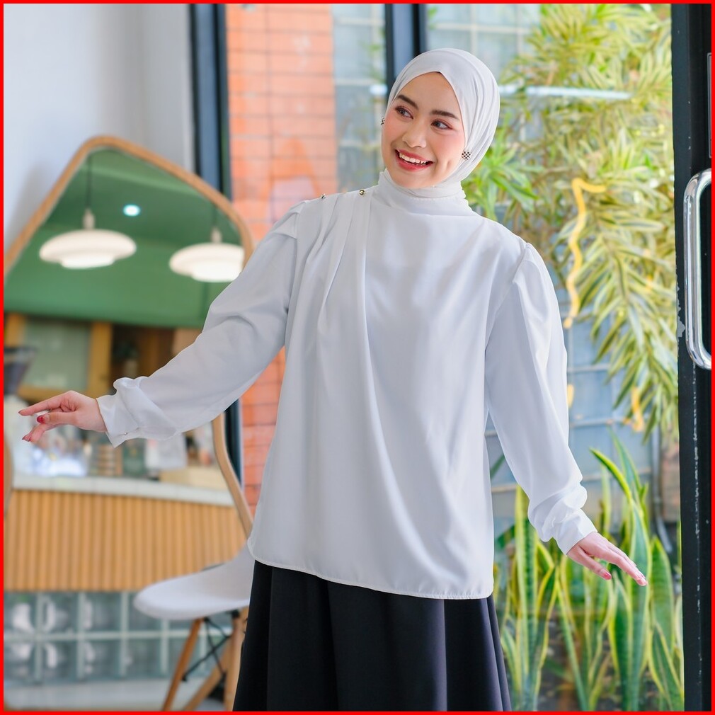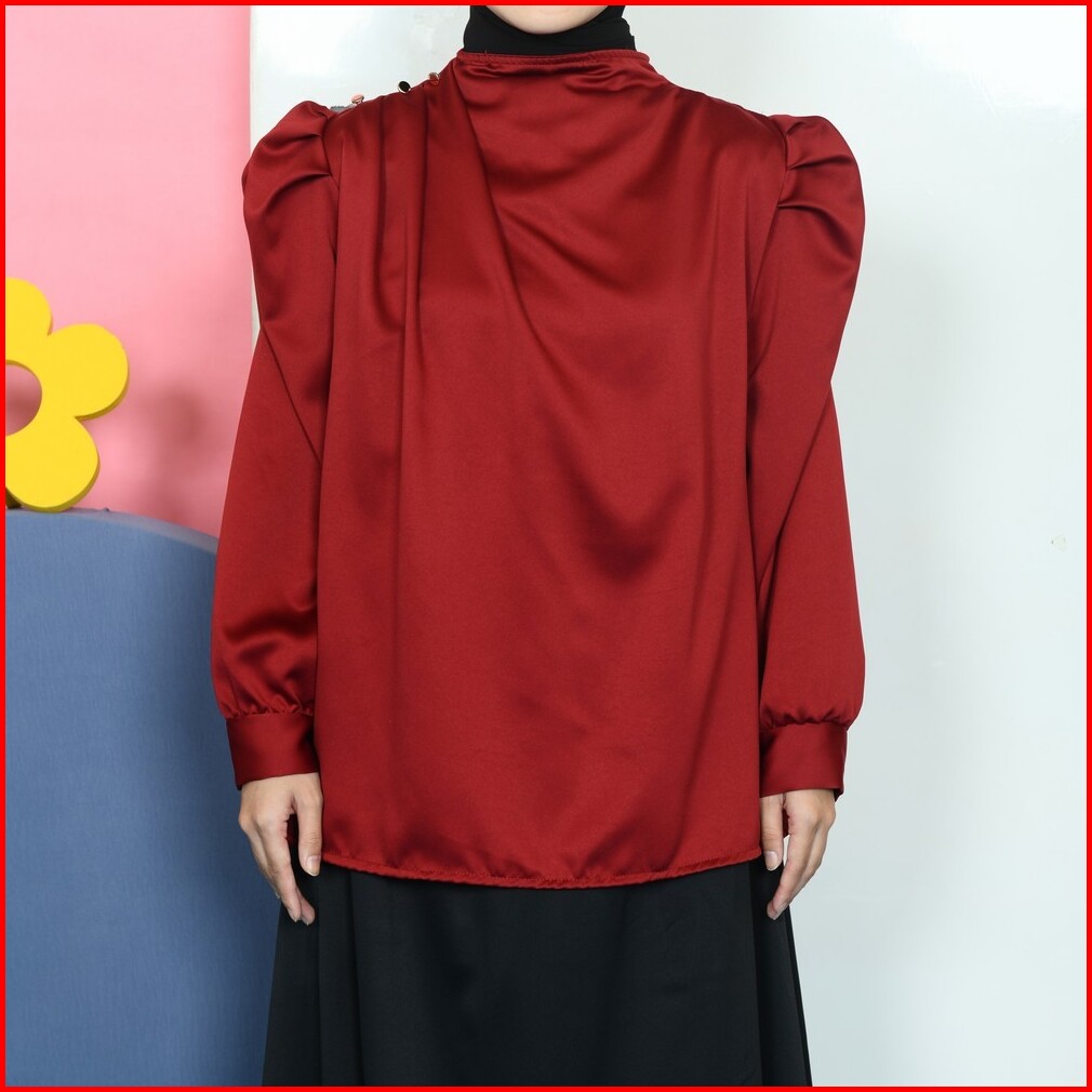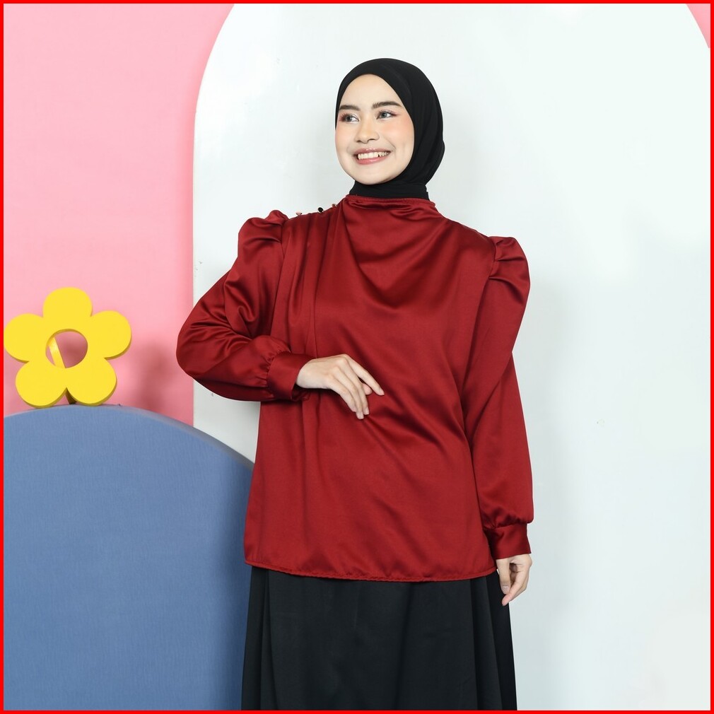 Mybamus Jena Balloon Puff Tops Atasan Kerja Blouse Bahan Satin Kondangan Kekinian