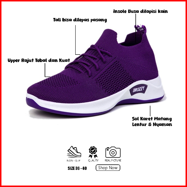 Brozzy Sepatu Sneakers Wanita Olahraga D12 Original Sepatu Senam Kasual Trendi Terkini