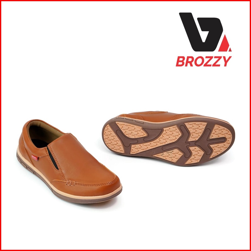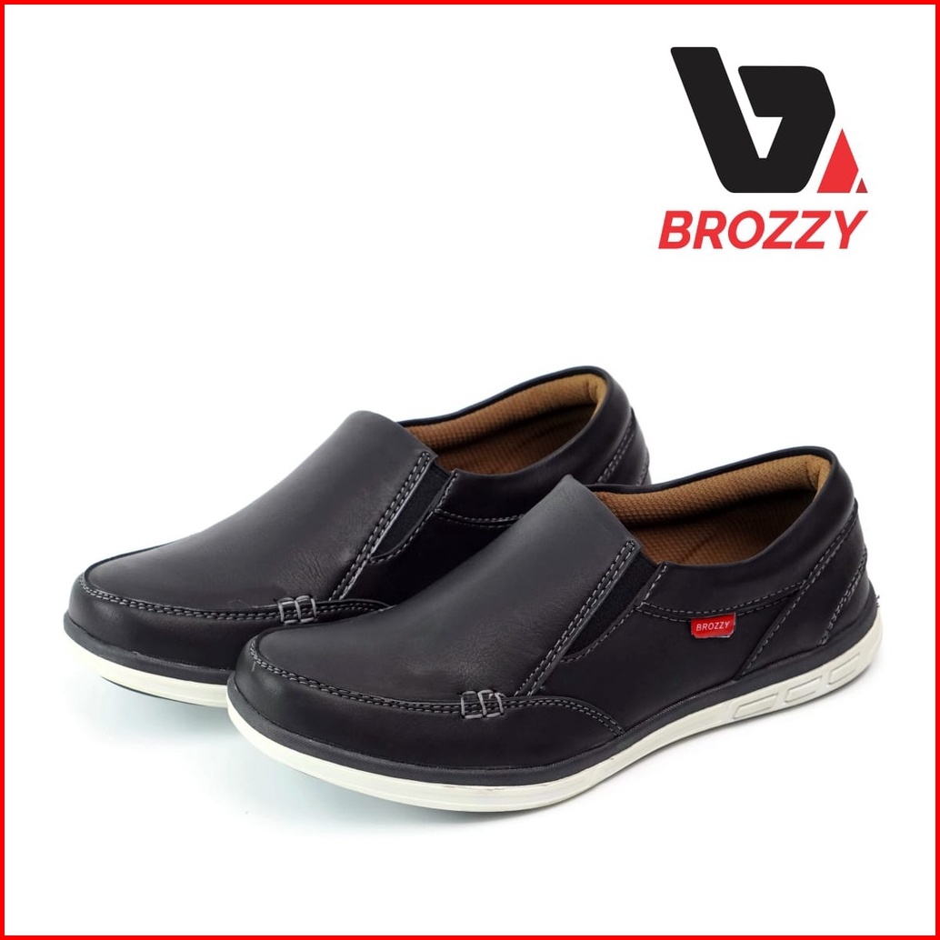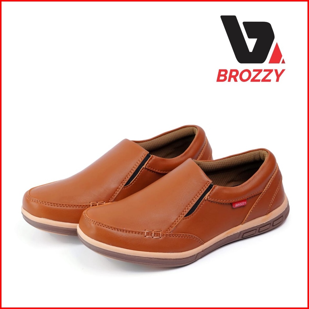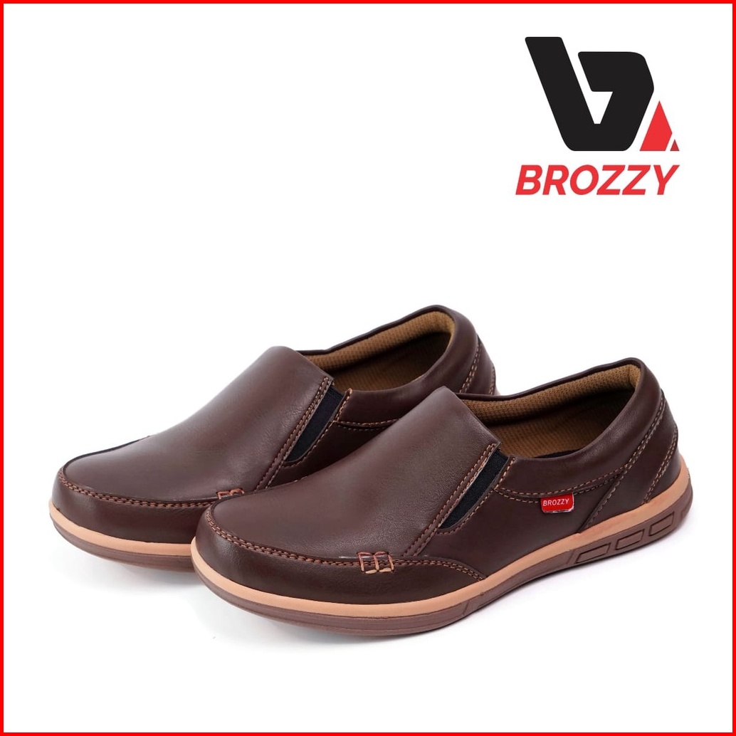 Brozzy Sepatu Pria Kulit Bz52 Sneakers Slip On Kerja Santai Formal Cowok Gratis Ongkir