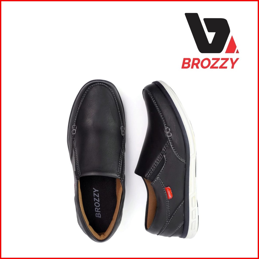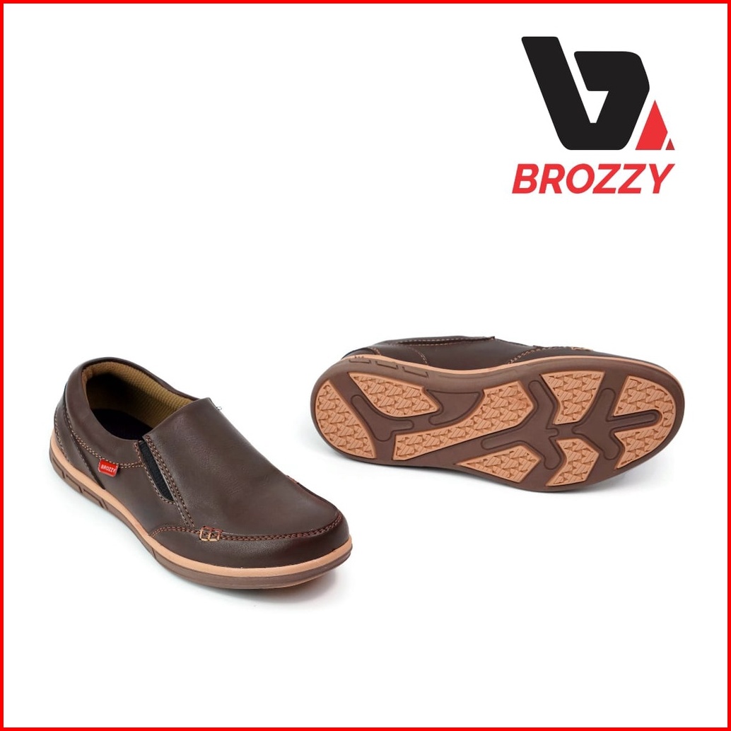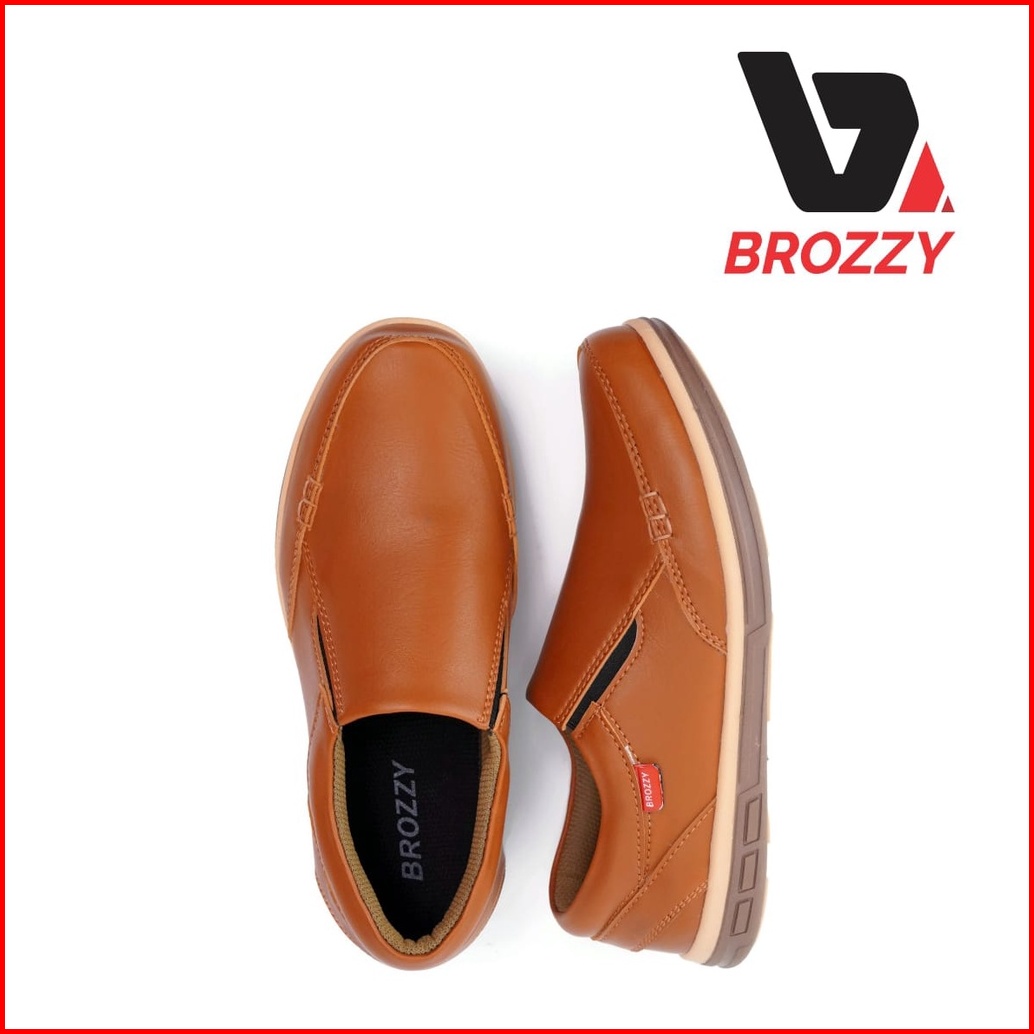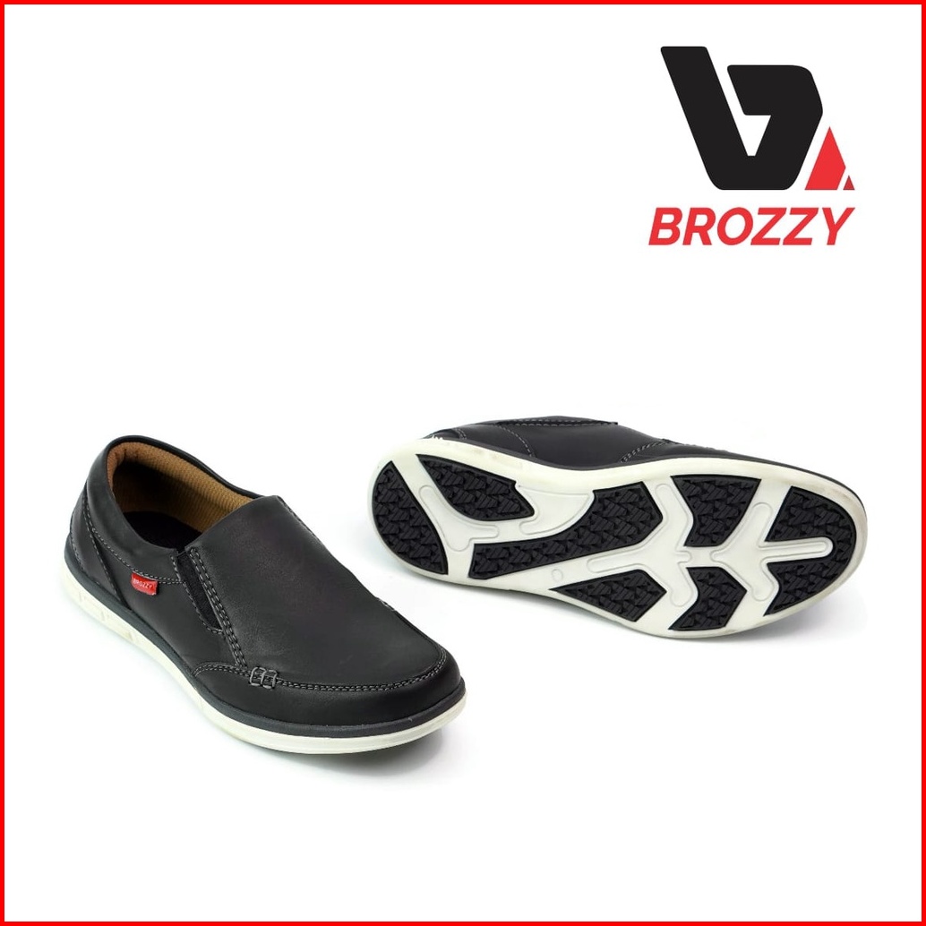 Brozzy Sepatu Pria Kulit Bz52 Sneakers Slip On Kerja Santai Formal Cowok Gratis Ongkir