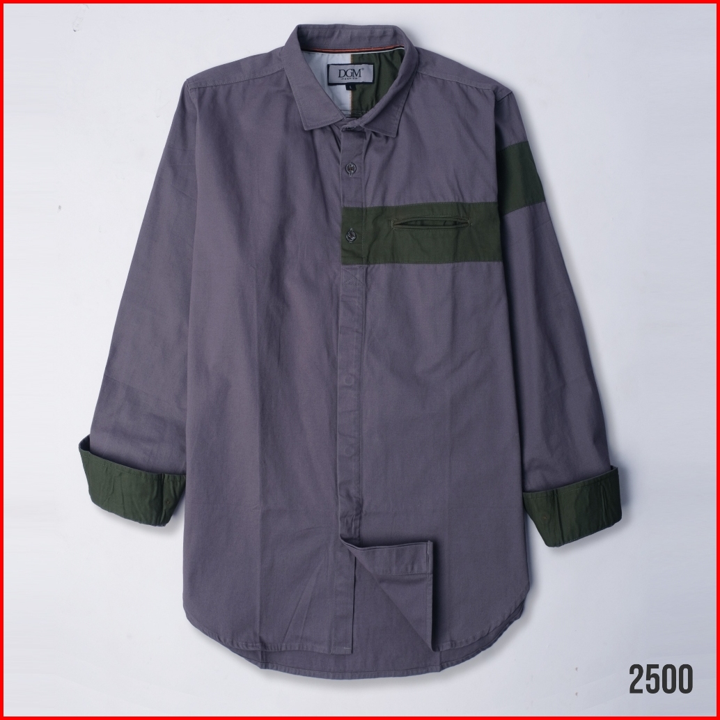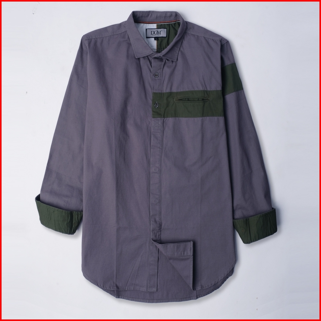 Dgm Workshirt Kemeja Katun Twill 30s Premium Lengan Panjang Kombinasi Kemeja Pria Lilac - Army Elvano 2500