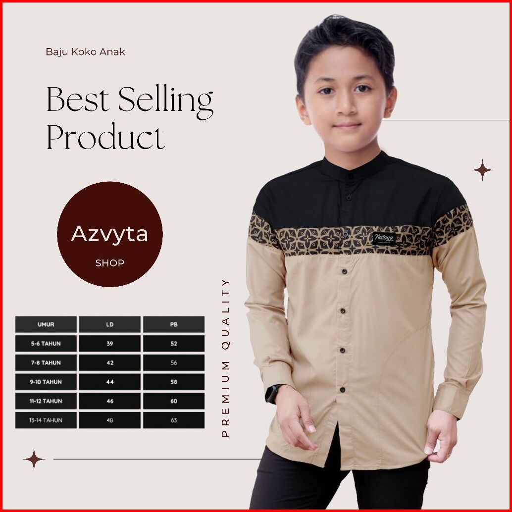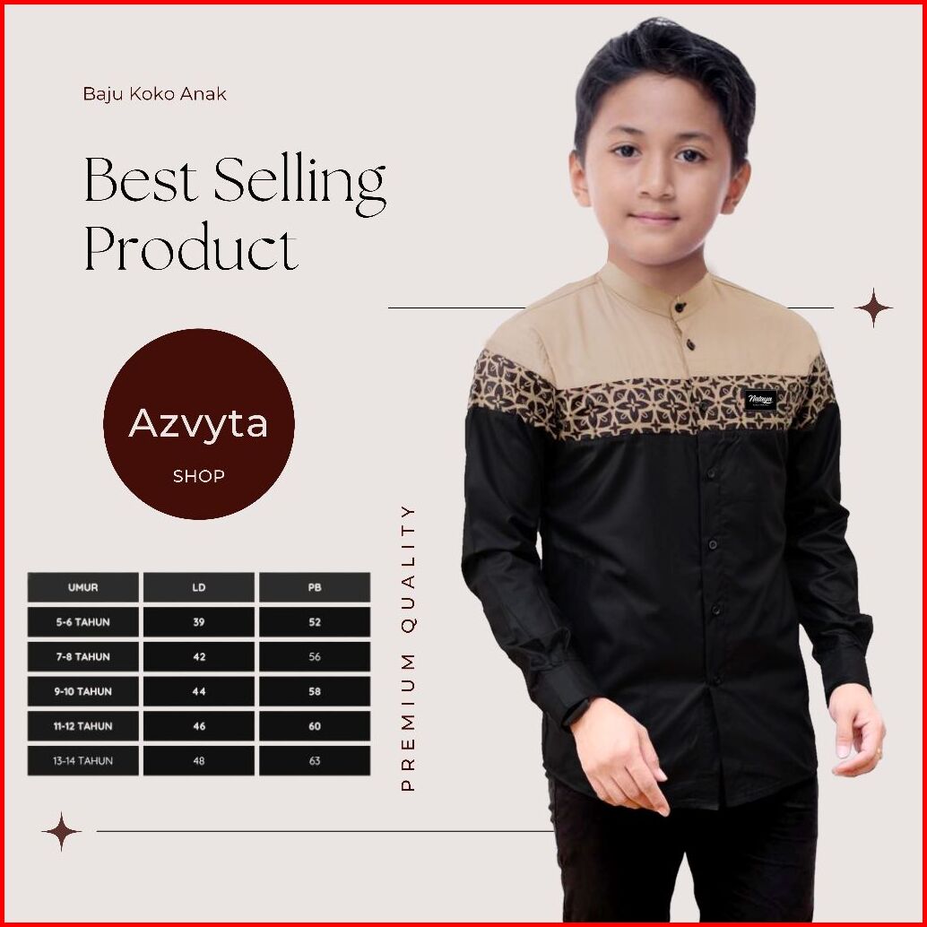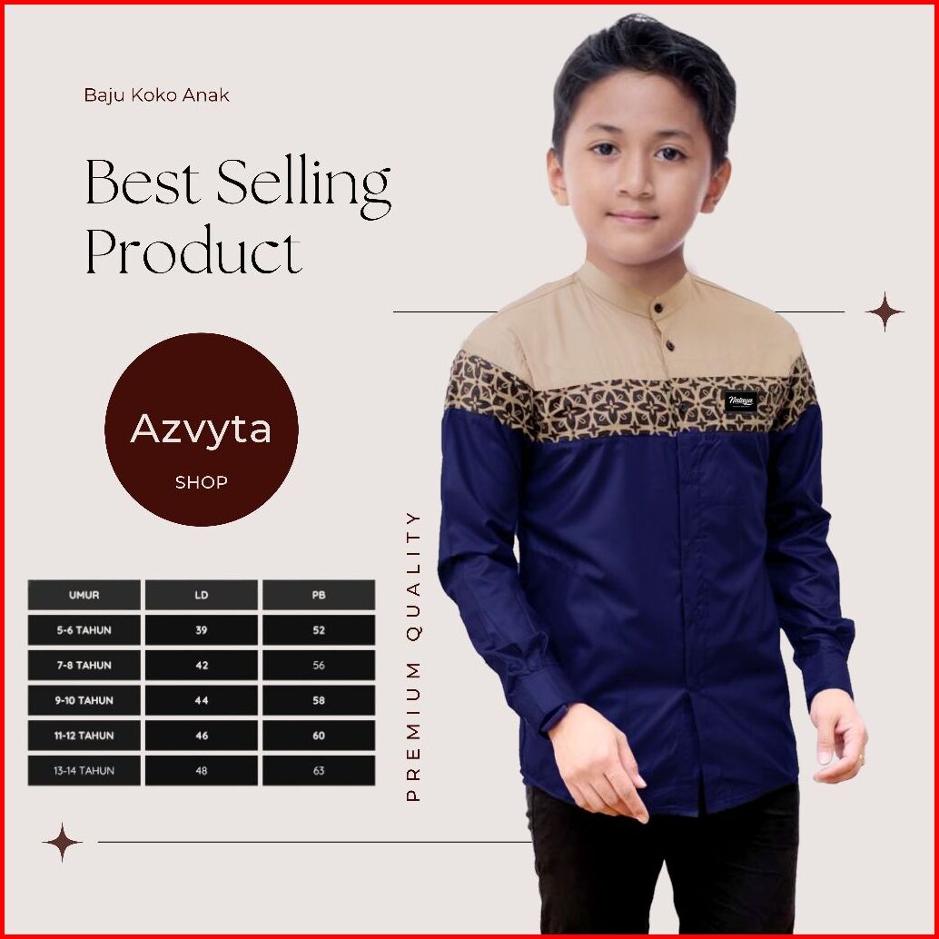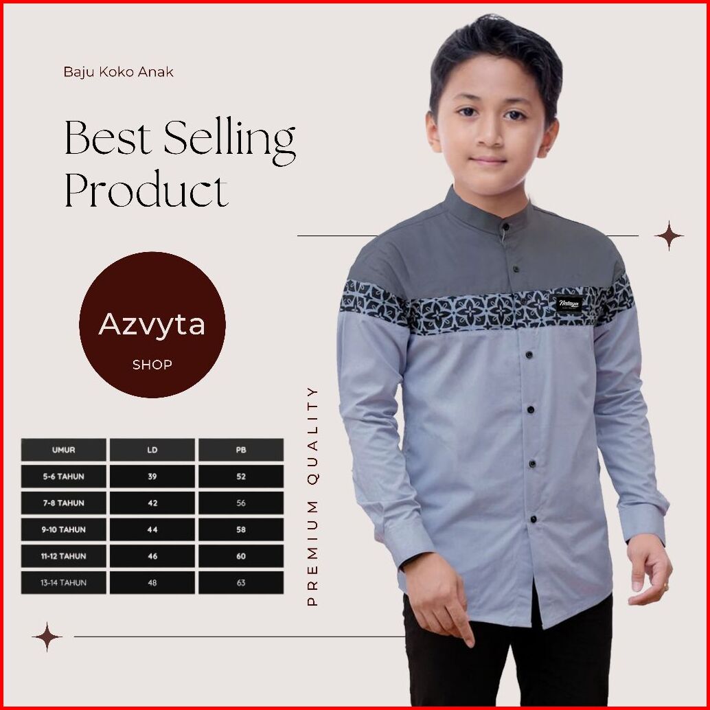 Baju Kemeja Koko Anak Lengan Panjang Umur 5 Sampai 14 Tahun