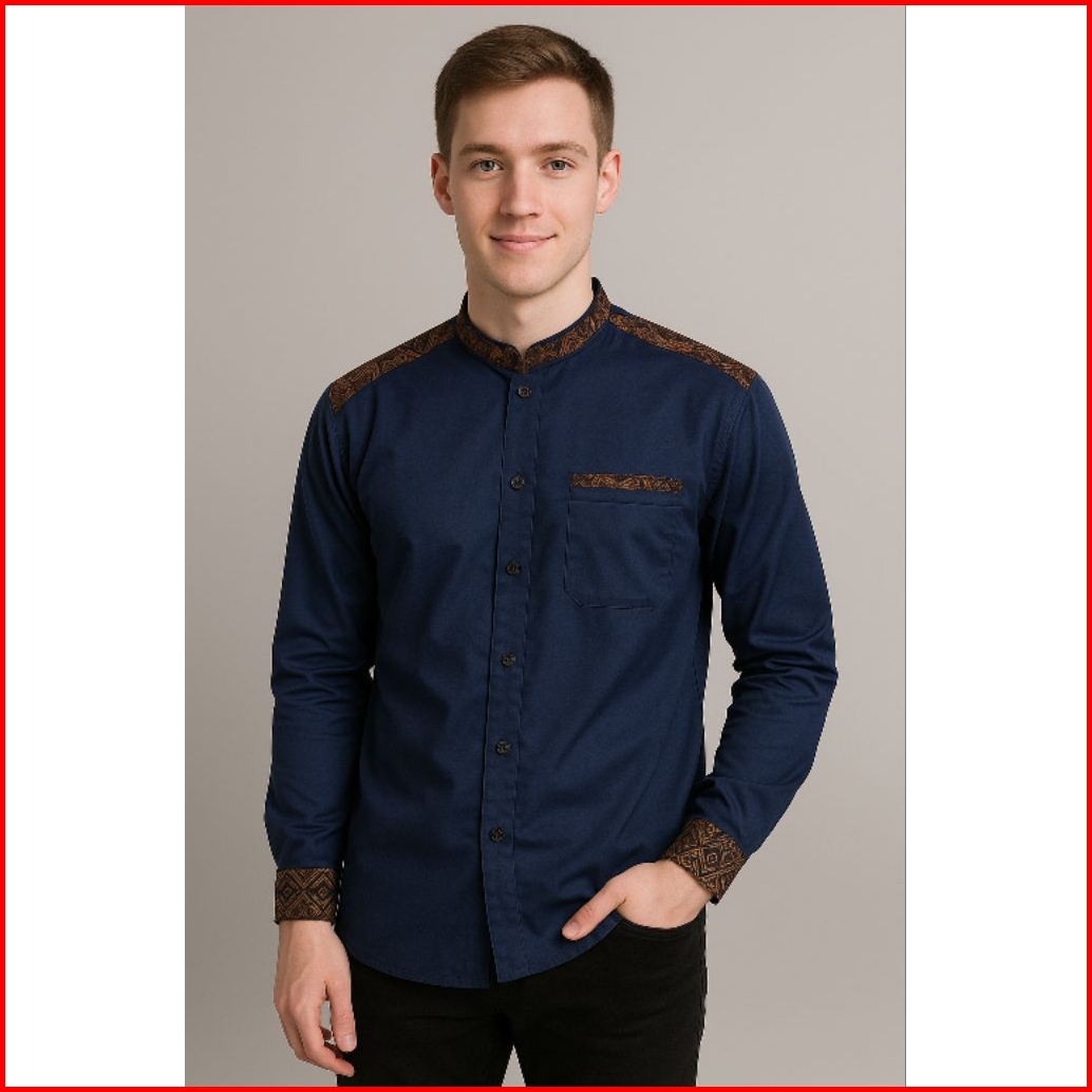 Baju Kemeja Koko Pria Dewasa Lengan Panjang M L Xl Xxl Xxxl Terbaru Kombinasi Batik Ini