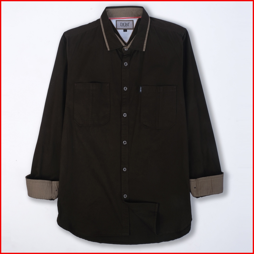 Dgm Workshirt Kemeja Kerja Katun Twill 30s Premium Lengan Panjang Double Pocket Kemeja Pria Dark Coklat Dylan 2498