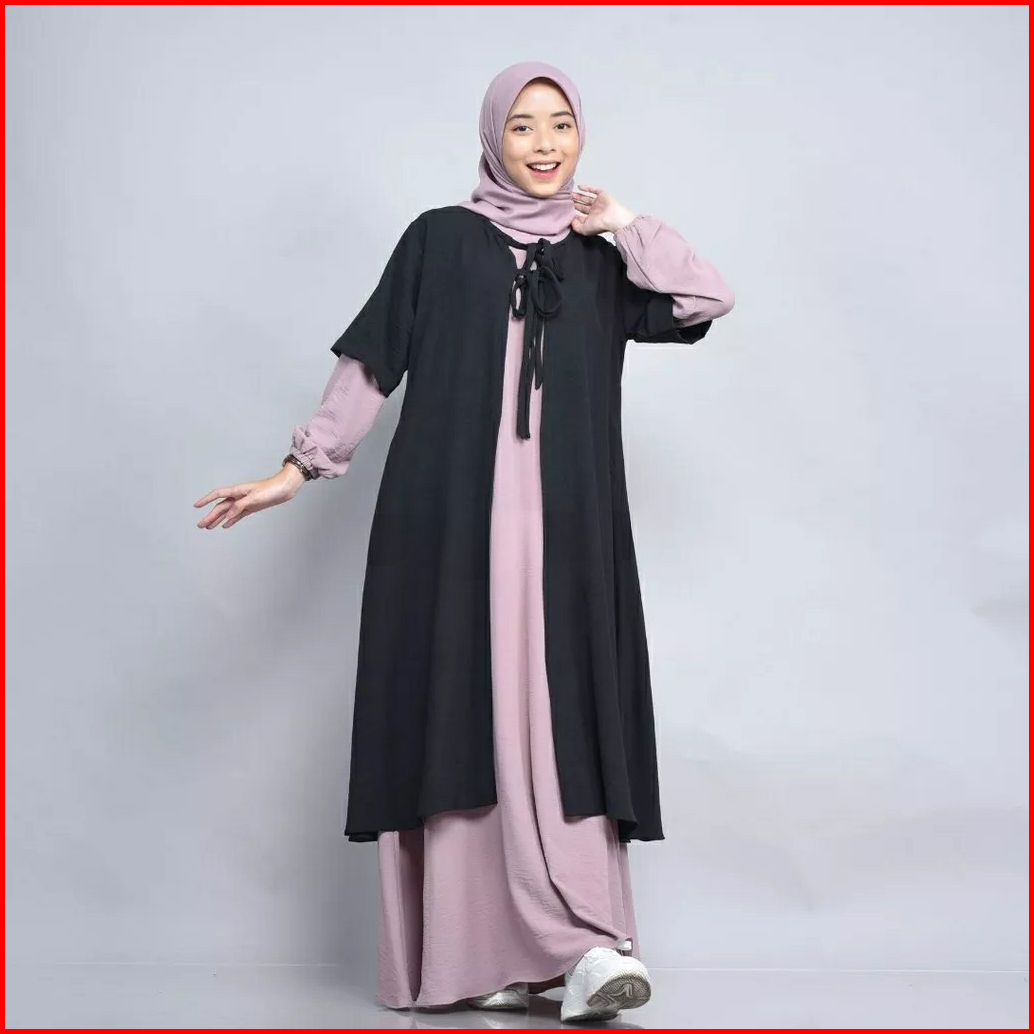 Rz Shafana Dress Tunik 2 In1 Set Gamis Dress Outer Tunik Crinkle Muslim Casual Dress Terbaru