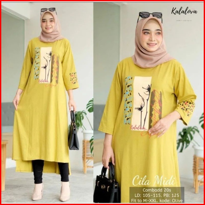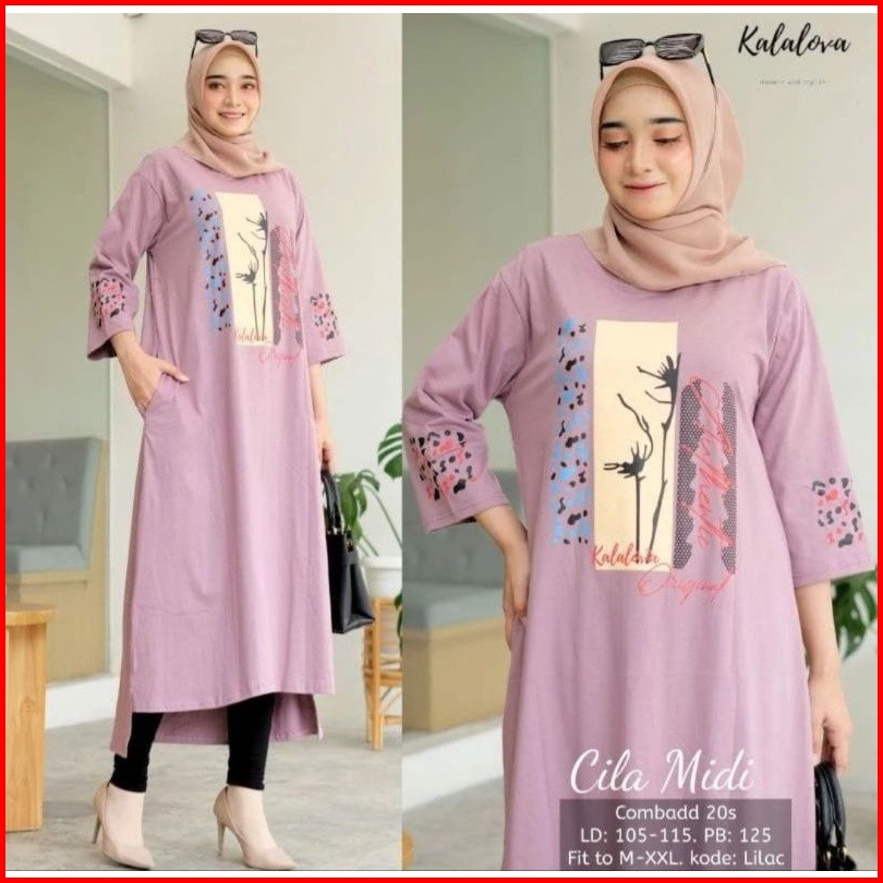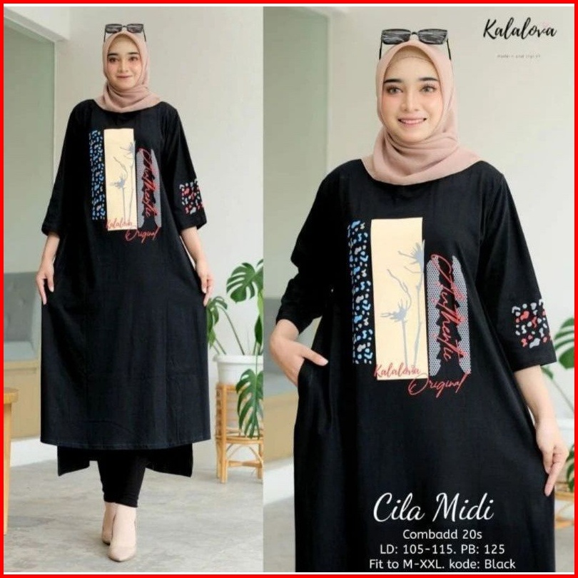 Cila Midi Dress Jumbo Bahan Combed Aplikasi Sablon Ukuran S M L Xl Xxl Busana Muslim Wanita Jumbo Midi Dress Combed Rema