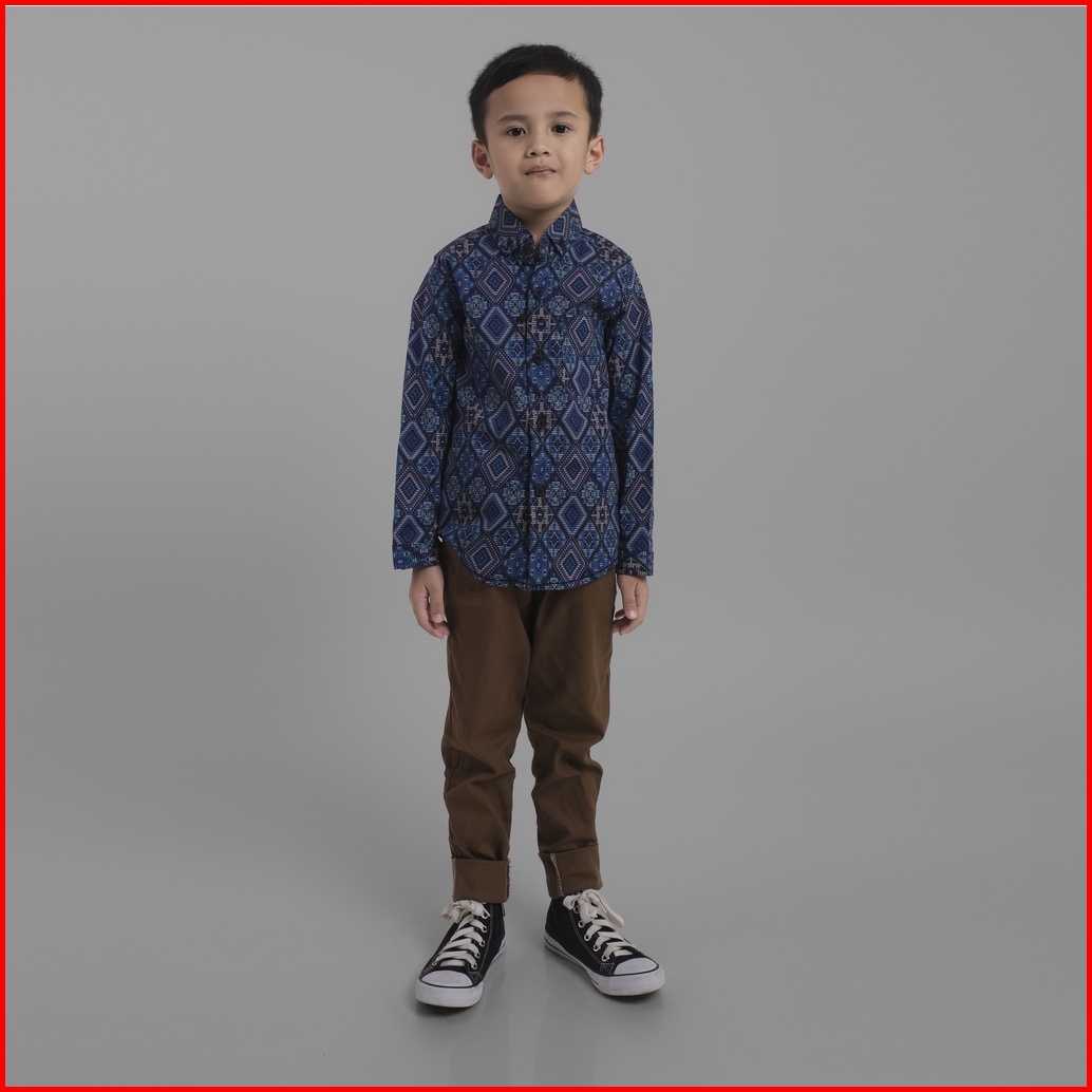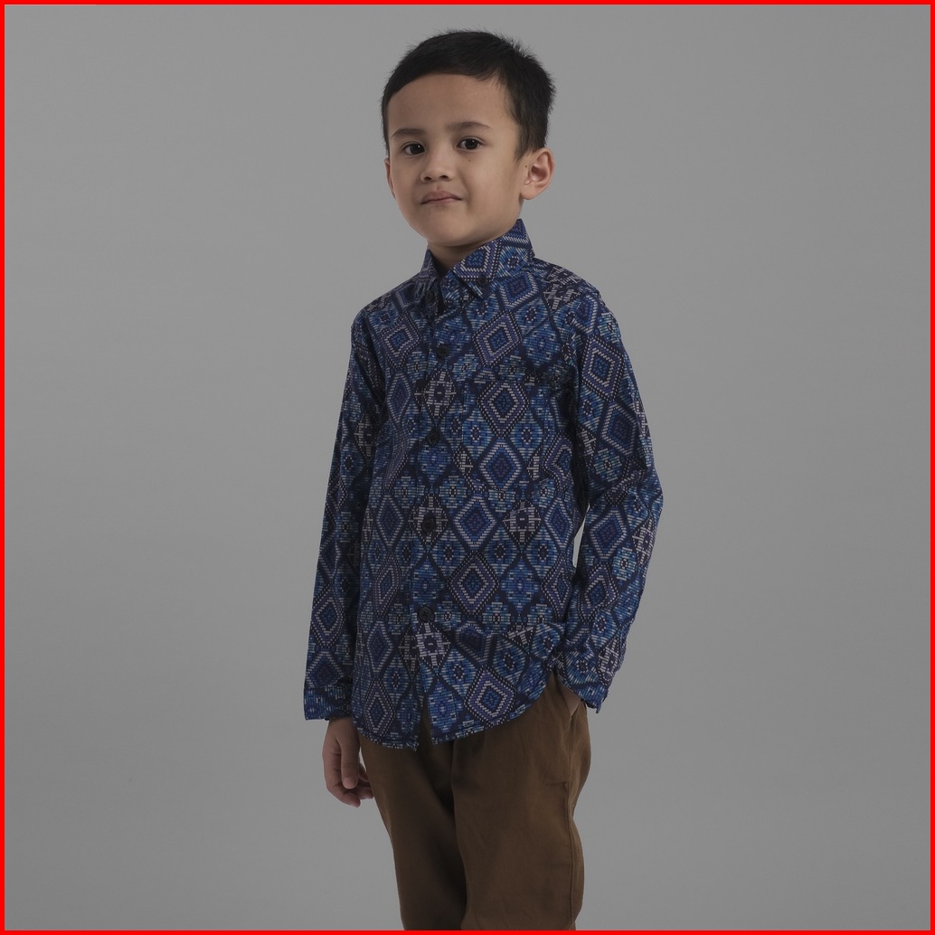 Dgm Kemeja Batik Anak Lengan Panjang Premium Diamond Biru 106