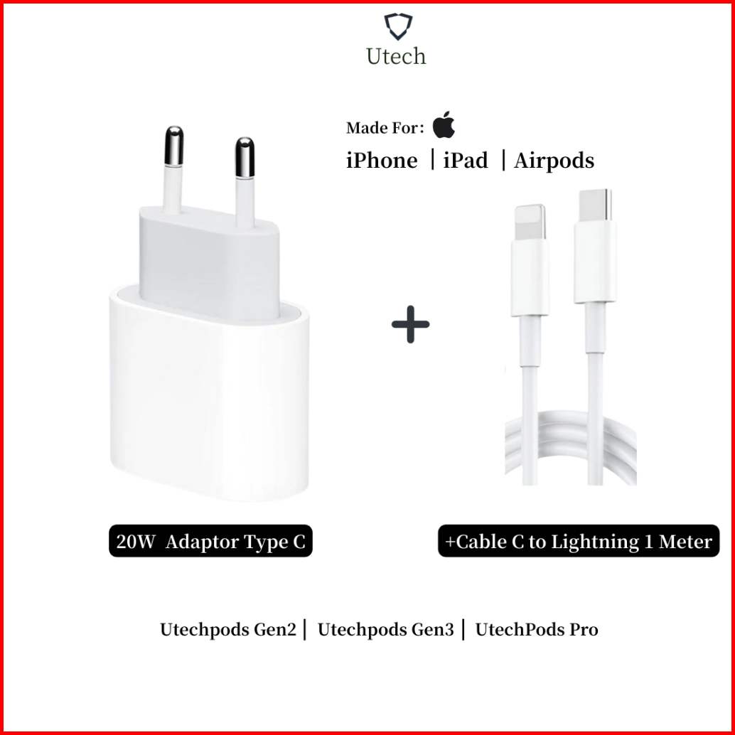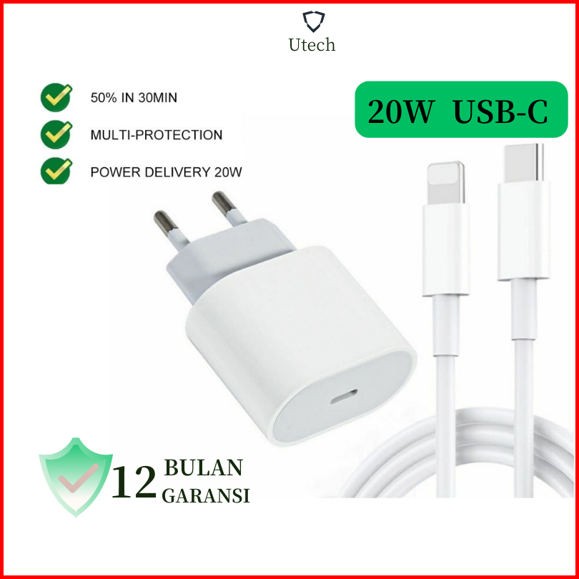 Utech Pd 20w Charger Iphone Original Charger Type C Fast Charging Kabel Data Type C To Lightning